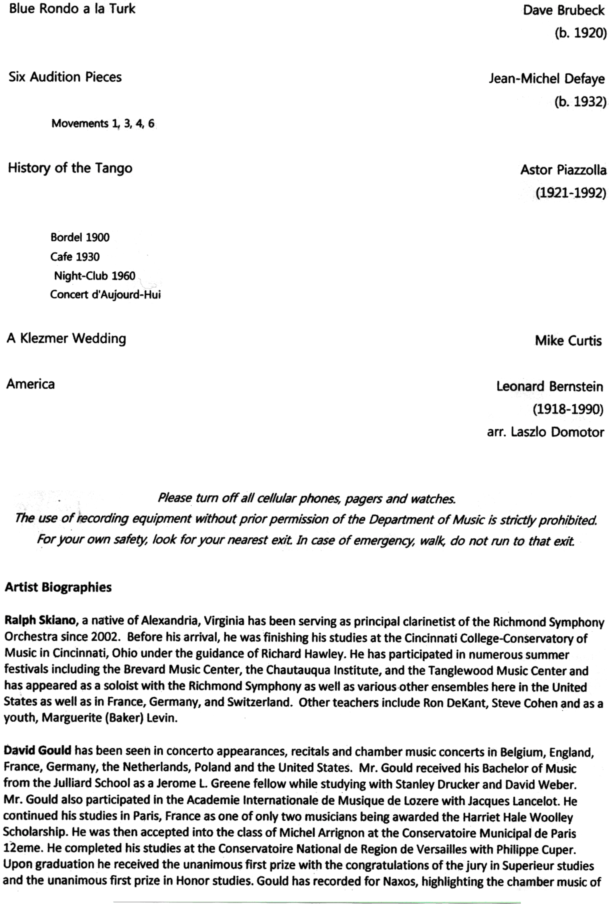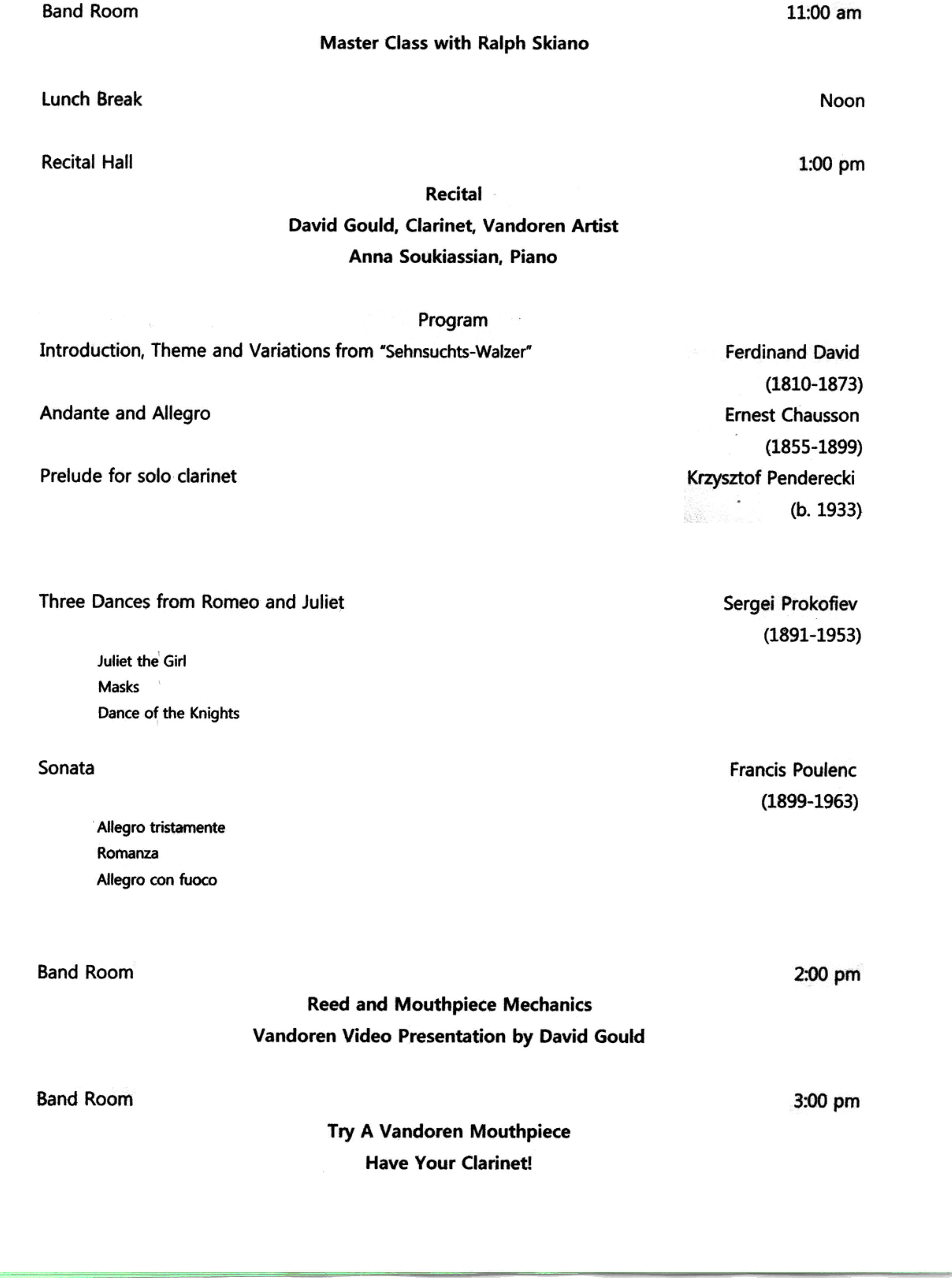 - 12:30-1:30 Clarinet