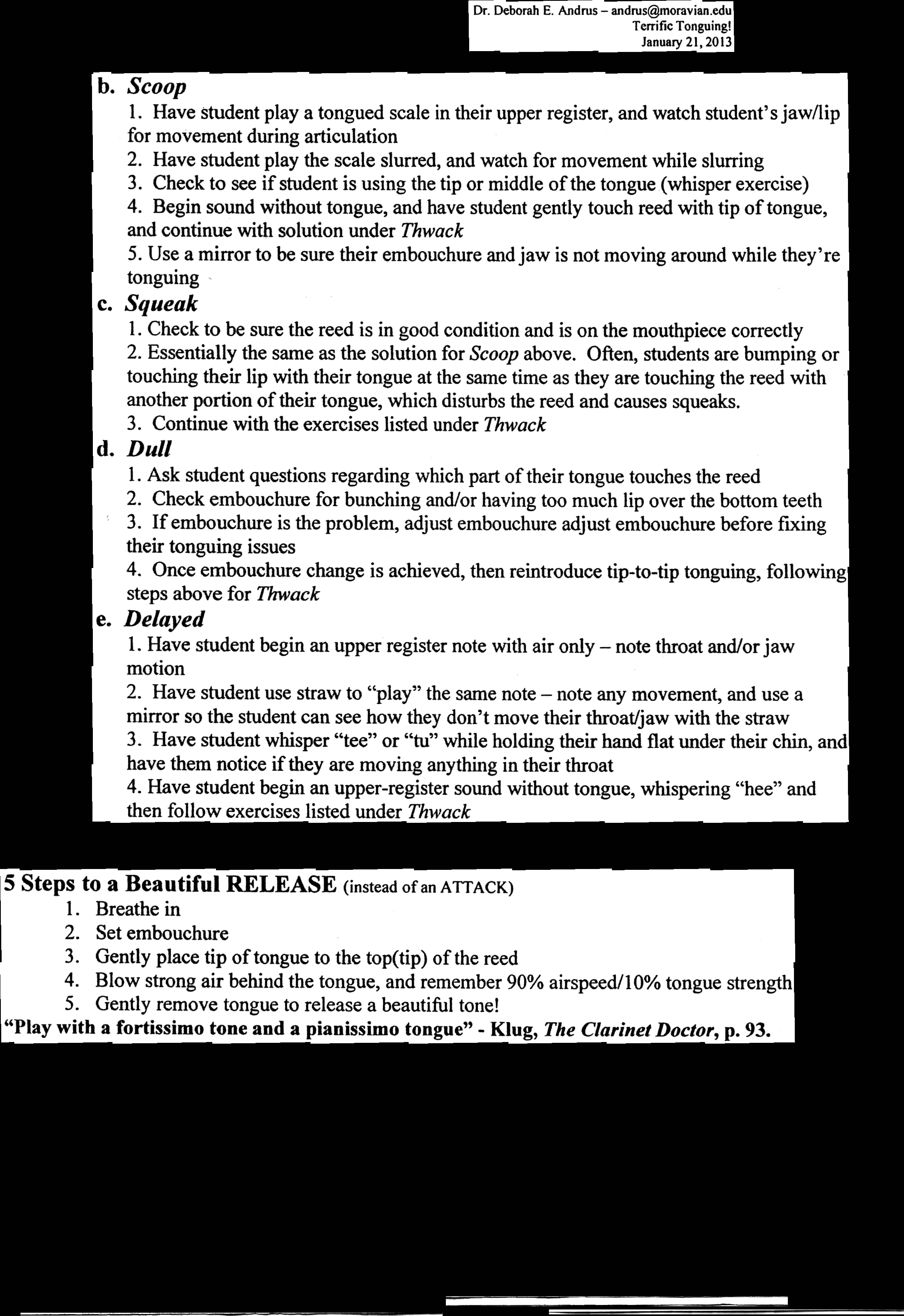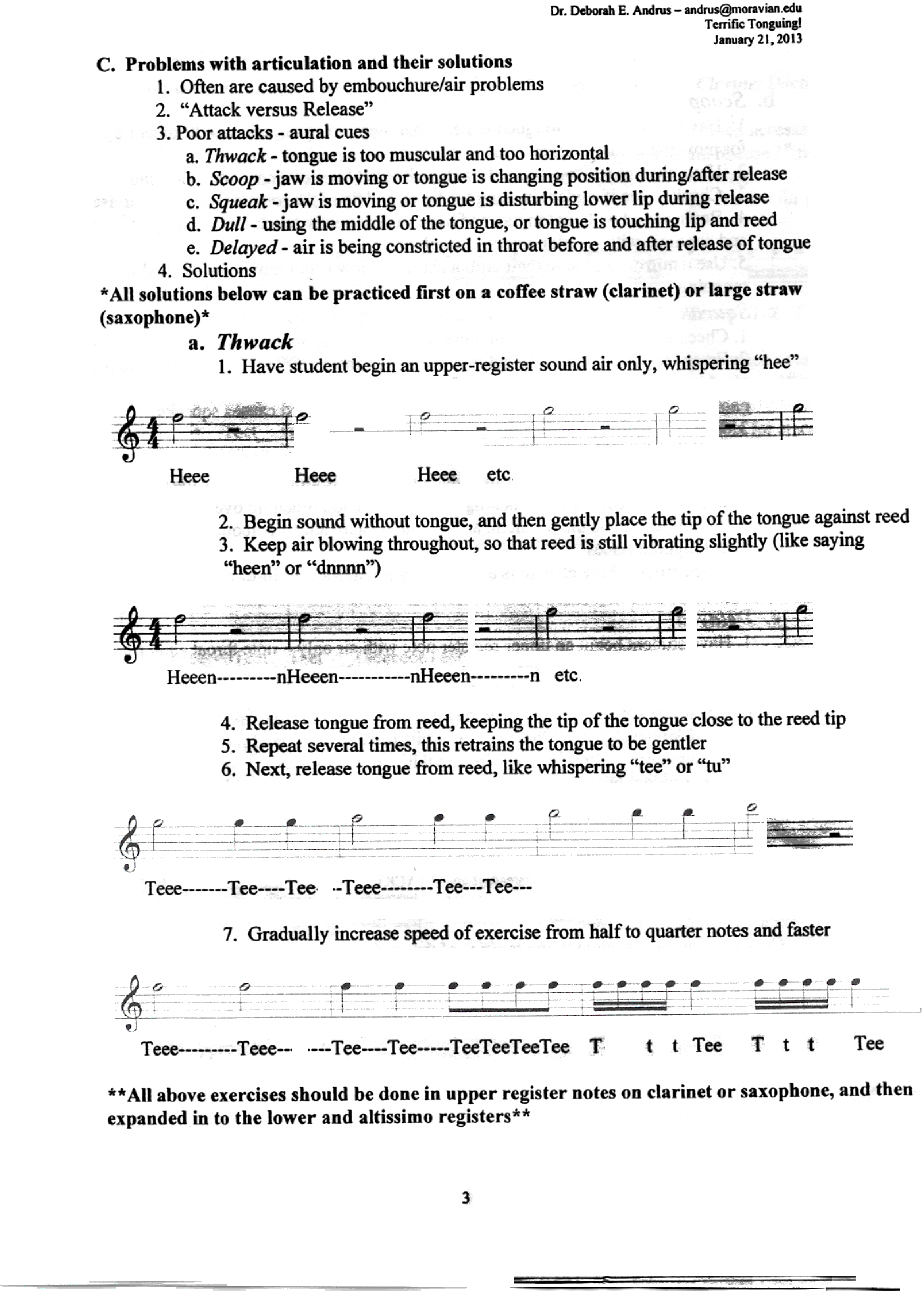 Director Deborah Andrus gave a very quick and insightful seminar about tonguing