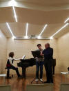 The concert concluded with Fauré’s Violin Sonata No. 2 in E minor, Op. 108, a work of his late years, after the tragic deafness that forced him into a more private, interior world. What is interesting is the way the first movement is actually quite violent emotionally, compared to what one “expects” from the master of charm. This reflects not only anger at his infirmity, but also the murderous raging of World War I during which it was composed. The dedicatee is Elisabeth, Queen of Belgium, a nation that was overrun by that very war. To this day, there exists a music competition in Belgium in her name. This work is not well known, even by musicians, let alone the general public; it seems to speak its own private language. But if one has ears to hear, the subtleties and harmonic audacities are stunning, and the amount of canonic writing (a favorite procedure of Fauré) between solo and right or left hand of the piano is immense. The slow movement is an elegy for a vanishing civilization. Ultimately, the work finishes with a cheerful, sometimes wistful, rondo. Both players were beautifully expressive, though some of the aforementioned register issues surfaced.