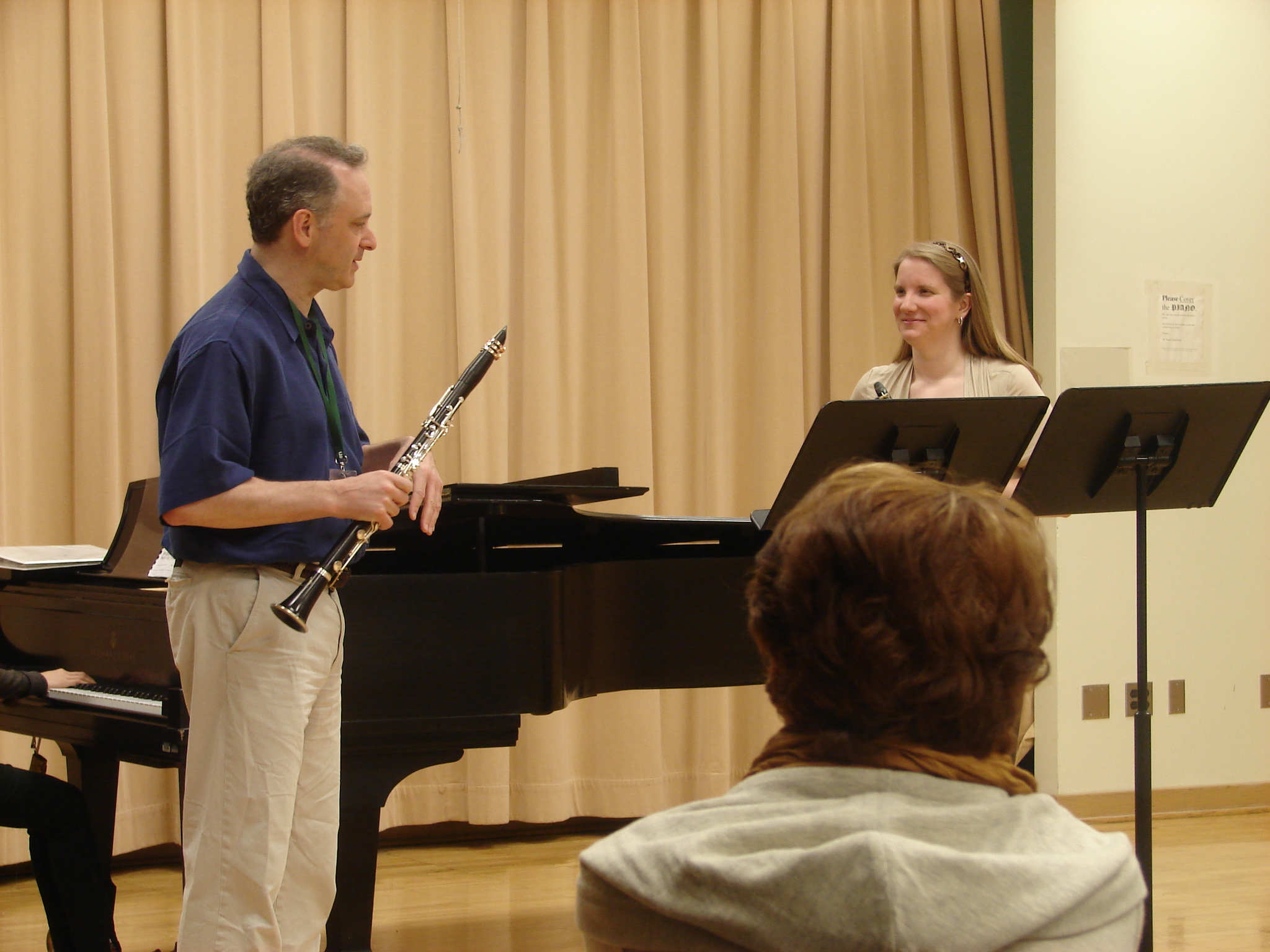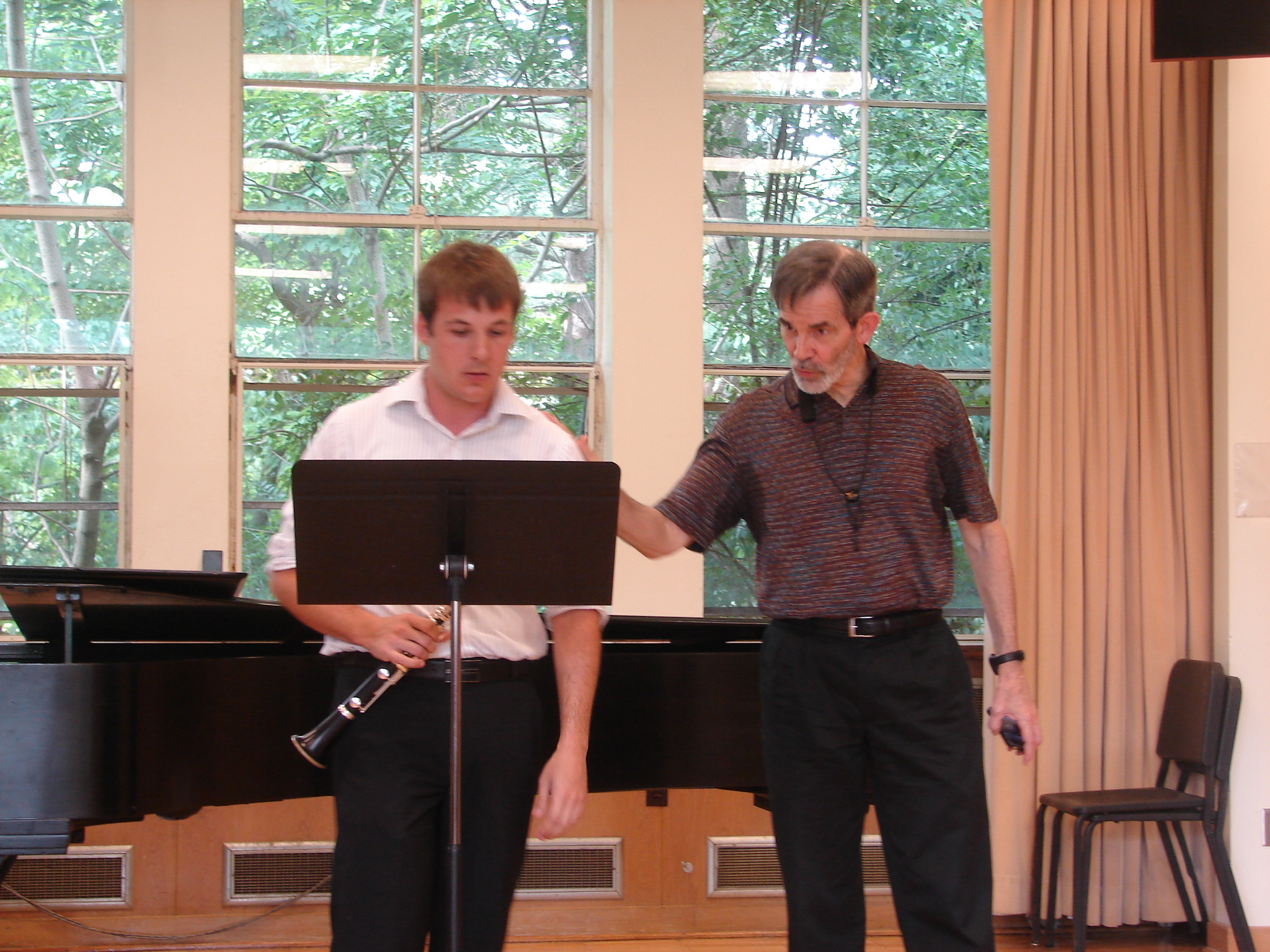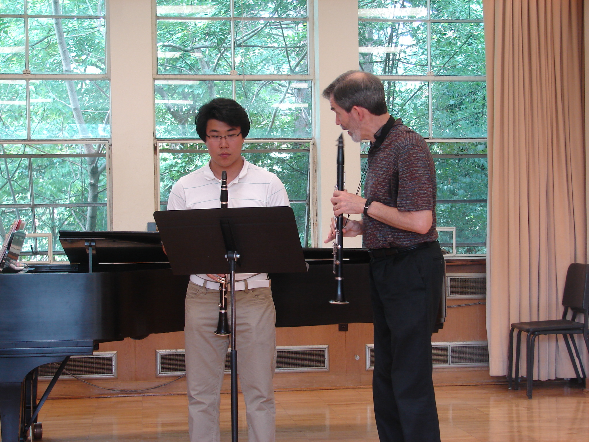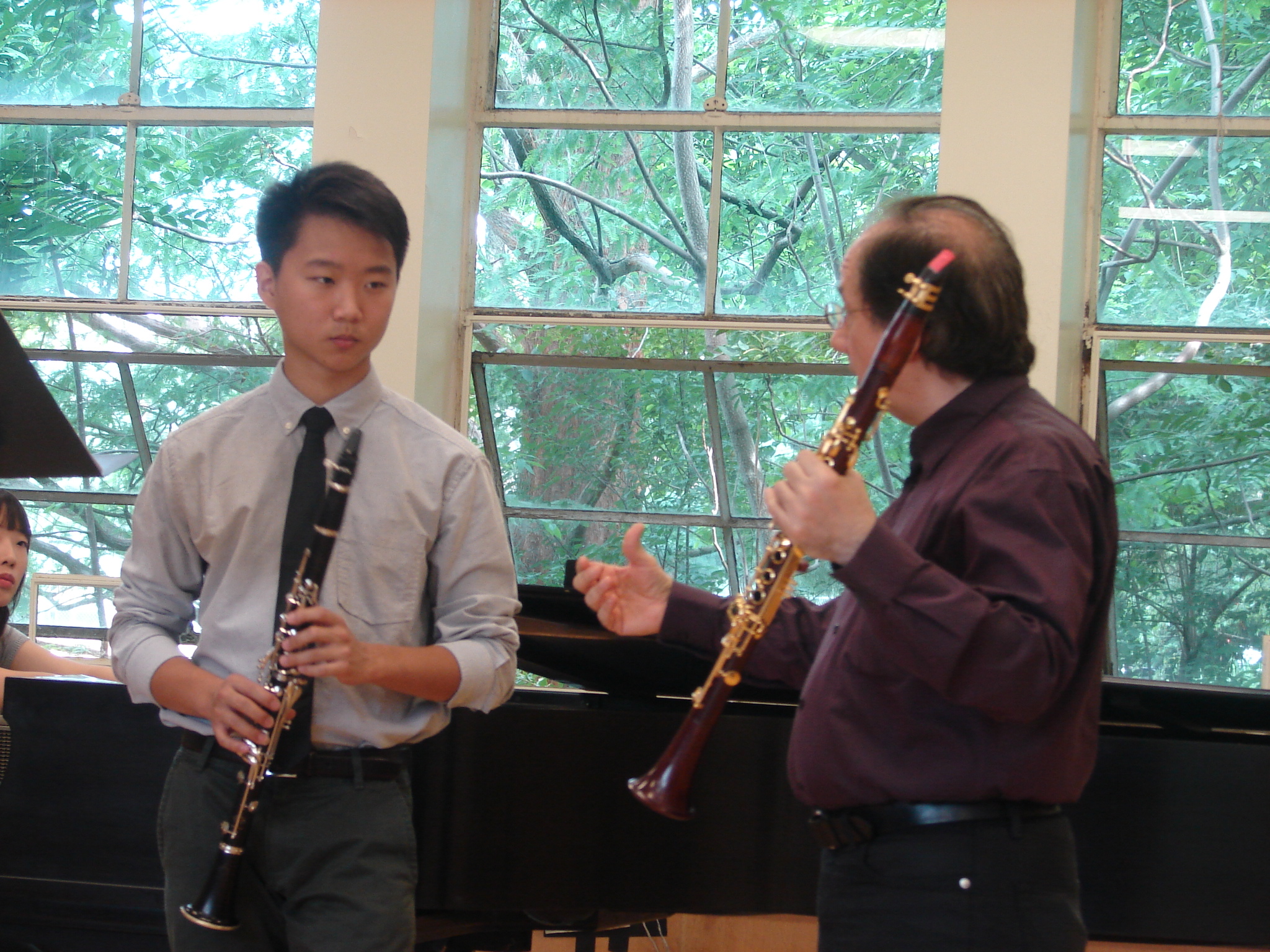 Charles Neidich’s printed program had music by Berg, Brahms, Prokofiev, and Sarasate, and an unscheduled bonus – Moonflowers Baby by Meyer Kupferman. Always seeking new horizons, Charlie played the Brahms on an Ottensteiner replica of Richard Mühlfeld’s clarinet and probed the stratosphere with his own versions of flute and violin music in their original registers. Collaborative piano responsibilities were divided equally between Jun Okada and Shu-han Lu, who did a superb job and also accompanied all of the student master classes and recitals.