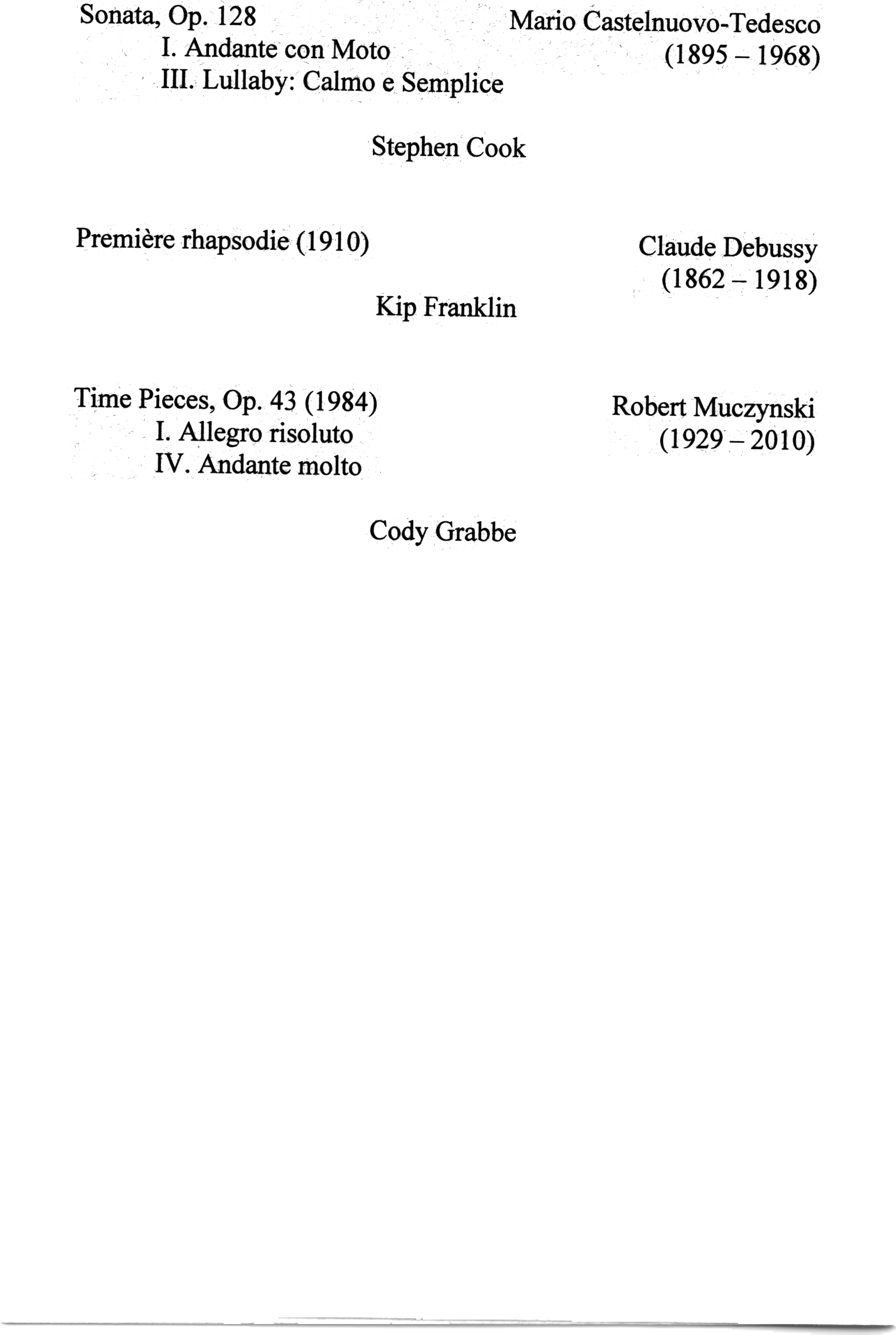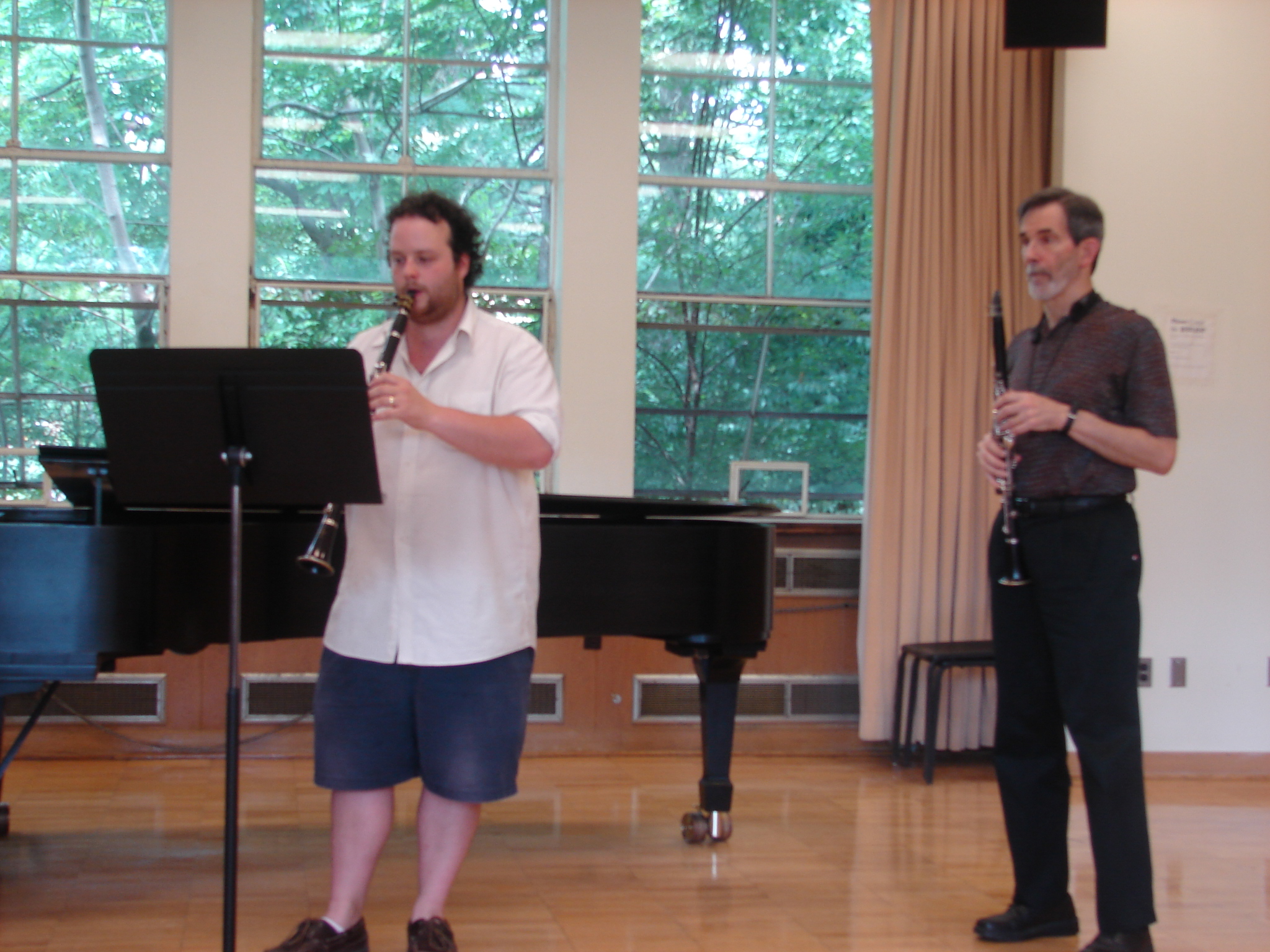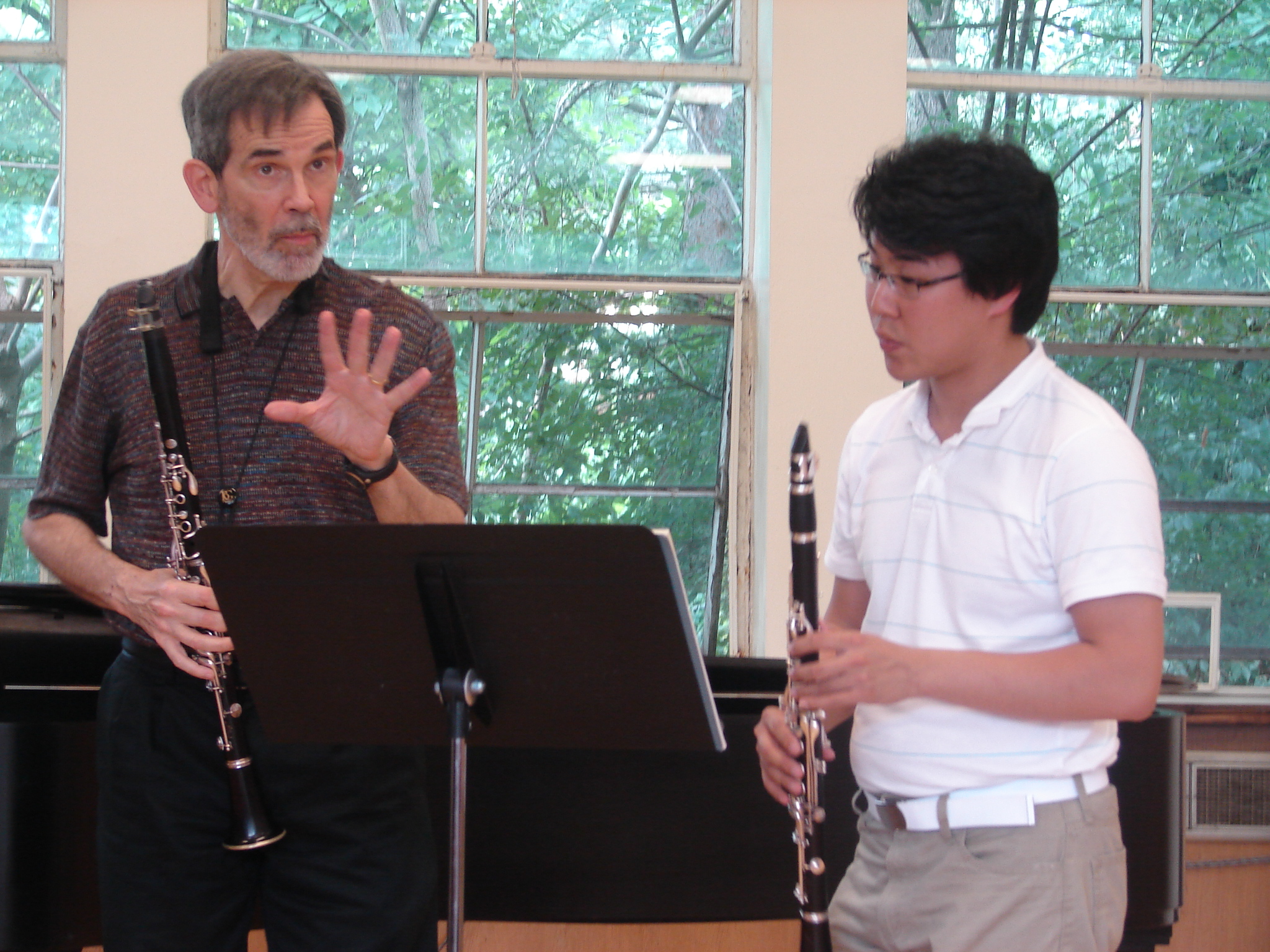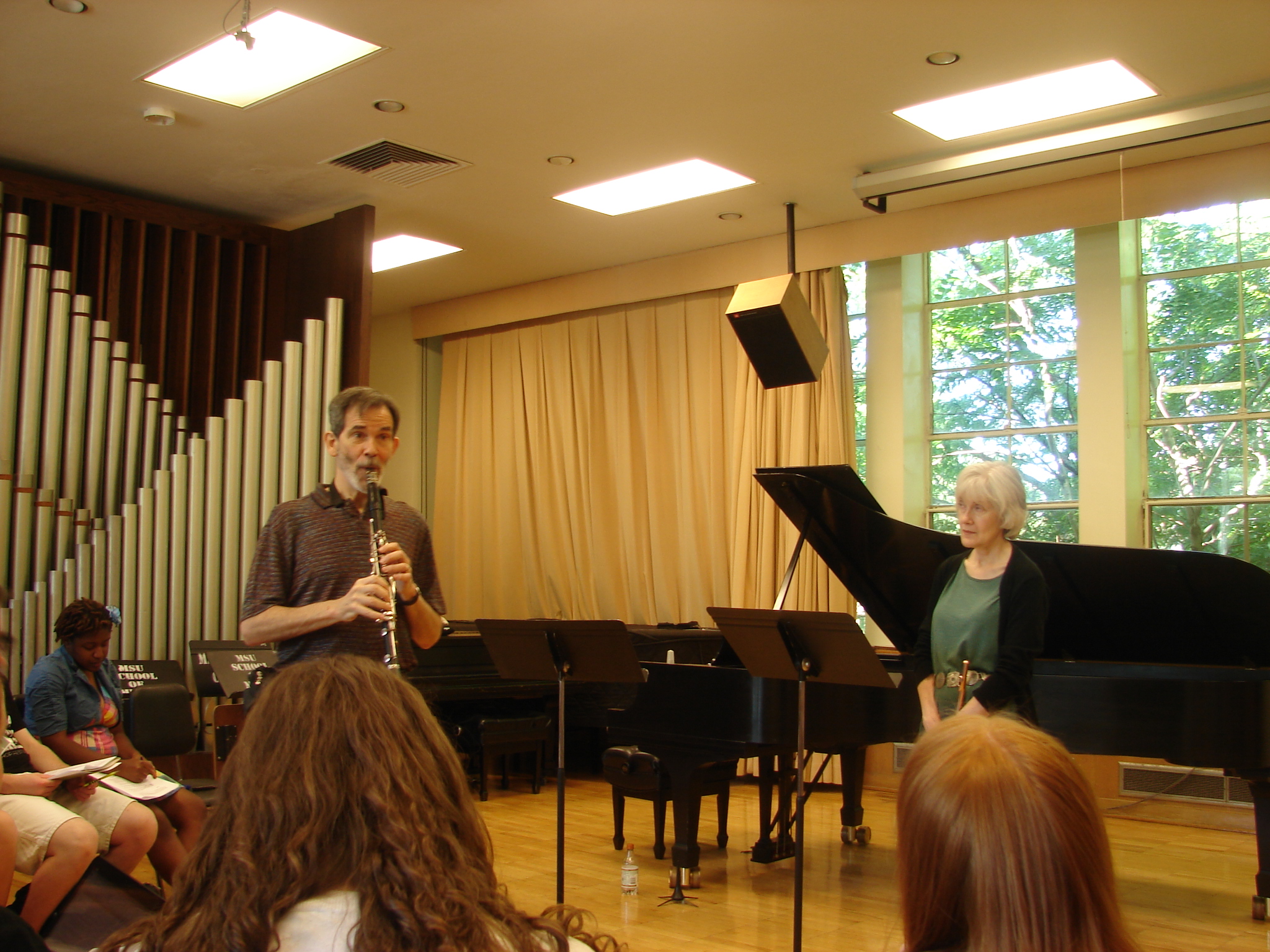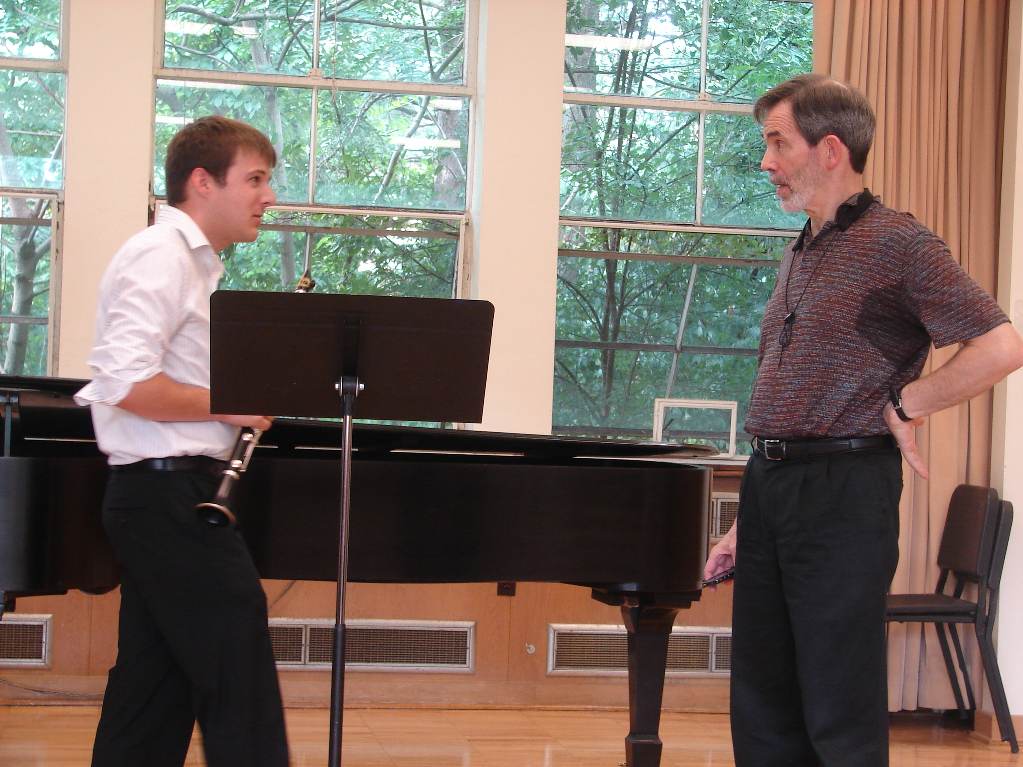 Charles Neidich’s printed program had music by Berg, Brahms, Prokofiev, and Sarasate, and an unscheduled bonus – Moonflowers Baby by Meyer Kupferman. Always seeking new horizons, Charlie played the Brahms on an Ottensteiner replica of Richard Mühlfeld’s clarinet and probed the stratosphere with his own versions of flute and violin music in their original registers. Collaborative piano responsibilities were divided equally between Jun Okada and Shu-han Lu, who did a superb job and also accompanied all of the student master classes and recitals.