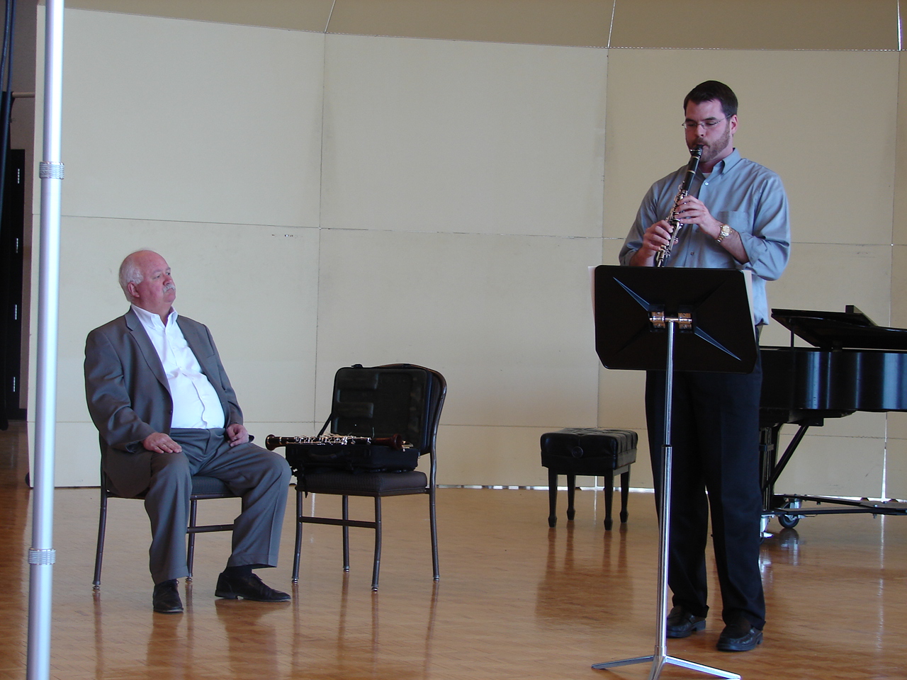 Saturday’s events included recitals and master classes for college students, and clinics and clarinet choir rehearsals for pre-college students. The opening host recital given by David Shea included a lyrical performance of Cahuzac’s Pastorale Cévenole and a lively performance of Horovitz’s Sonatina for clarinet and piano. Dr. Michael Dean followed with a recital, performing the “Allegro moderato” of Sonata for clarinet and piano by Alec Wilder, Josep M. Ruera’s Meditació for clarinet and piano, a wonderful transcription of Don Ellis’ jazz influenced piece Sonata for Clarinet Alone (Don Erjavec), and closed with a fun work for clarinet and tape by Phillip Bimstein entitled Half Moon at Checkerboard Mesa. Dean provided a wonderful and very engaging performance of these 20th century works.