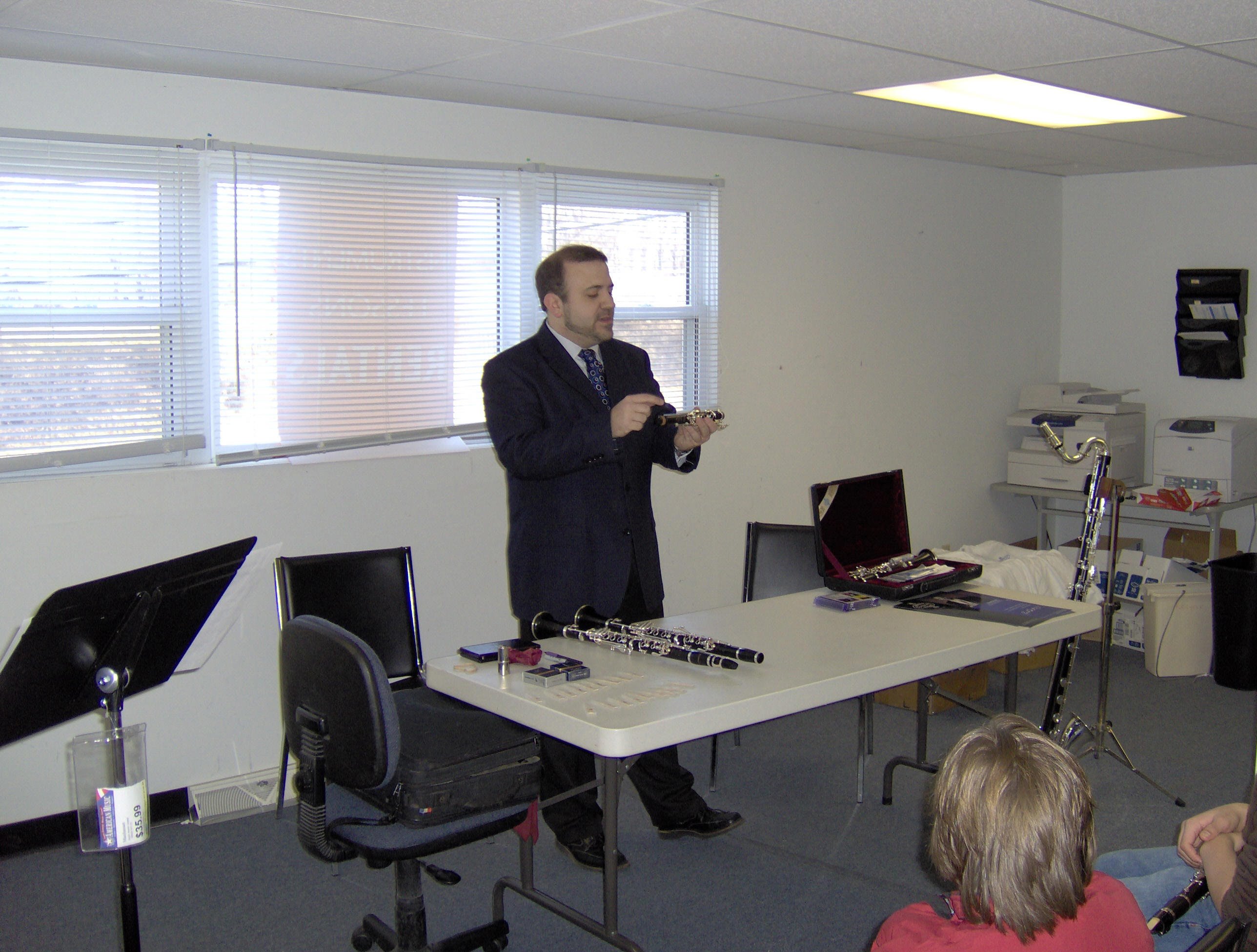 Staff Sergeant Sam Kaestner, a Bass Clarinetist in the Band, gave a lecture demonstration