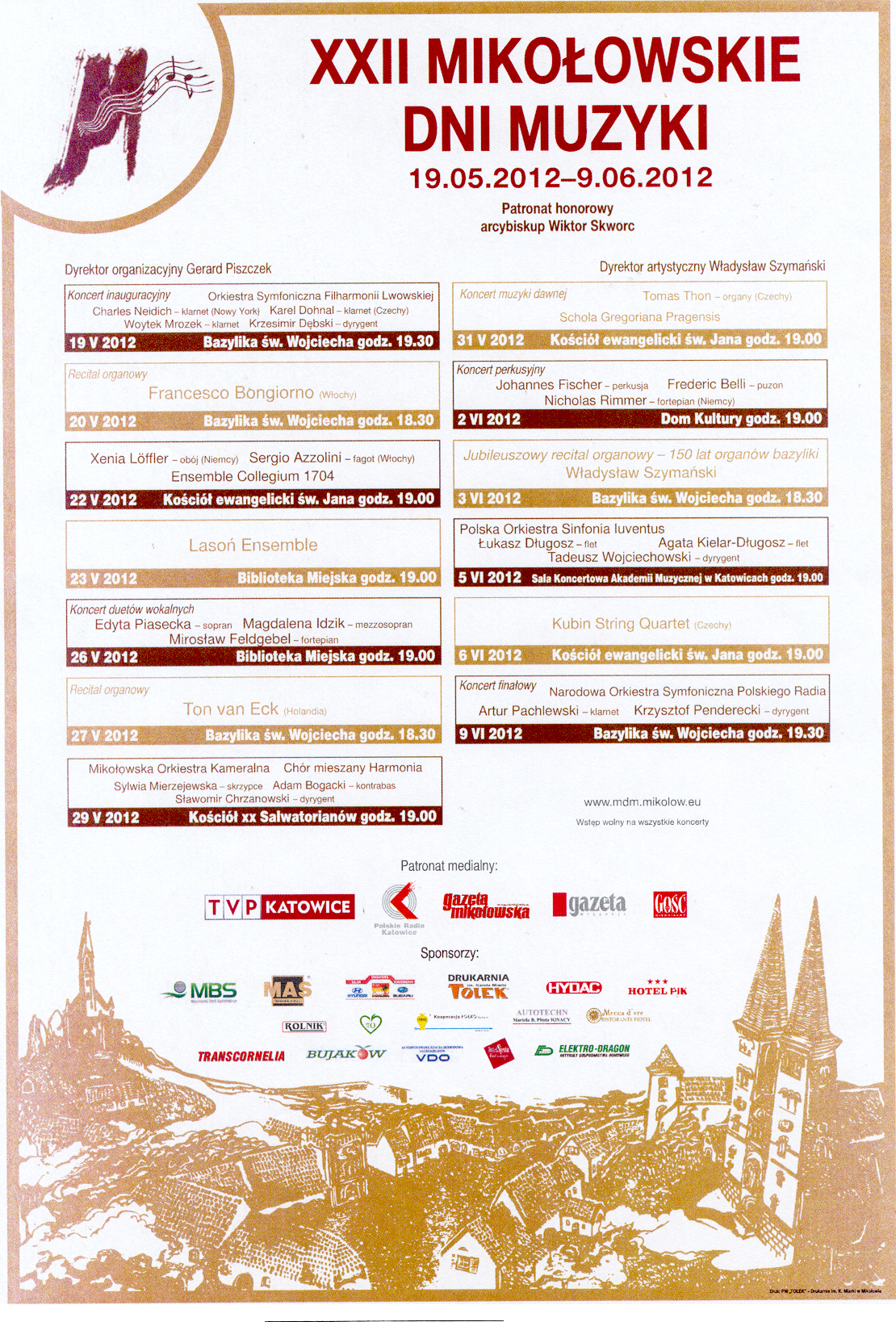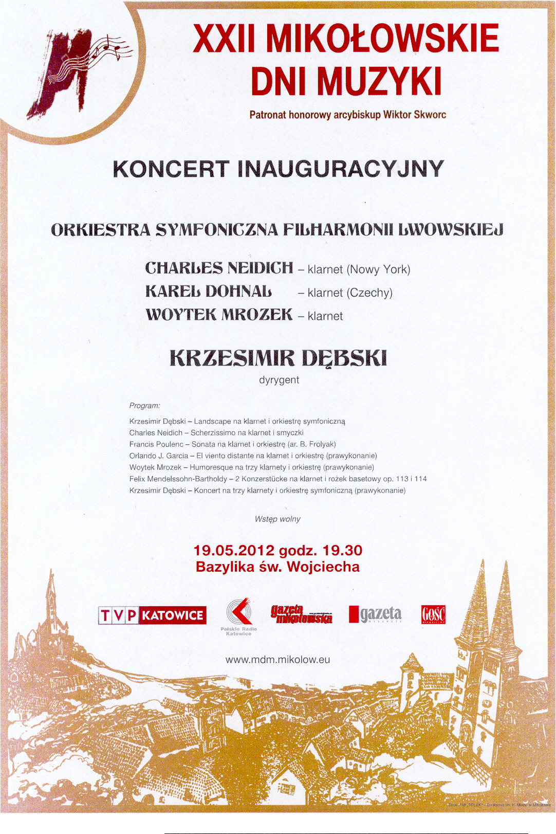 MIKOLOW MUSIC FESTIVAL - 19 May 2012 PREMIERES CONCERT – CLARINET MASTERS with Krzesimir Dębski conductor / composer (POLAND), Dr Woytek Mrozek clarinet - (POLAND), Prof. Charles Neidich - clarinet and basset horn (USA), Karel Dohnal clarinet (CZECH REPUBLIC) with the LVIV PHILHARMONIC ORCHESTRA (UKRAINE) -