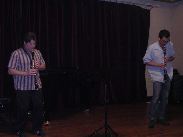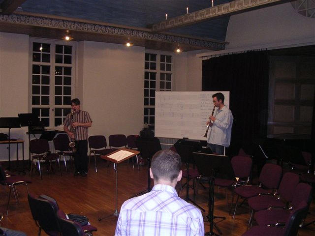On Monday Alberto Pinton and Per Johansson held an well attended master class/clinic about playing jazz and the clarinets in different settings. They emphasised the importance about knowing what is going on under the musical line . A direct example was also shown from the Mozart clarinet concerto were the clarinet is more accompiament than solo line. They played and demonstrated on the whole clarinet family from e-flat to contra.