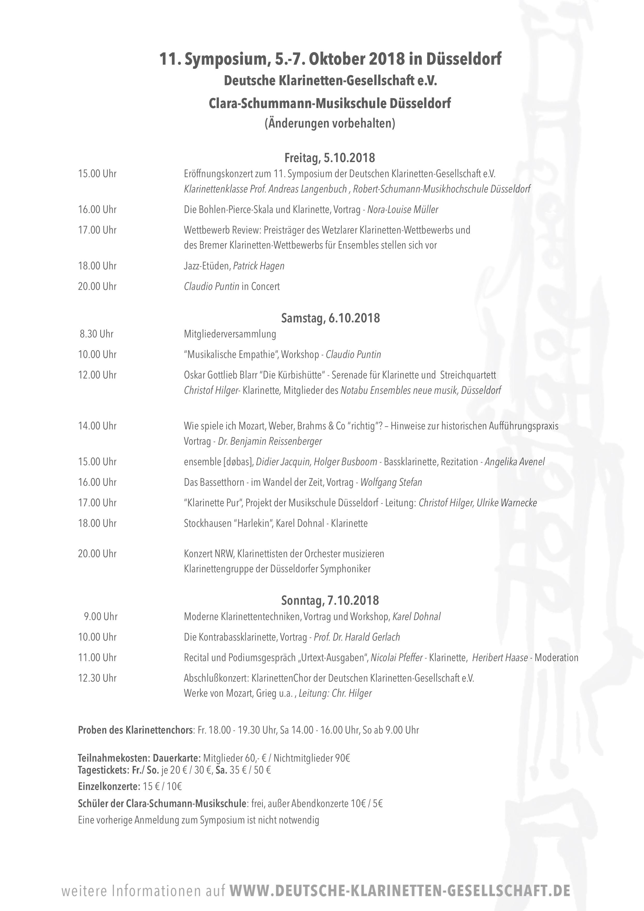 11th Klarinette Symposium with the Deutsche Klarinetten Gesellschaft - Dusseldorf, Germany - 5 - 7 Oktober 2018
