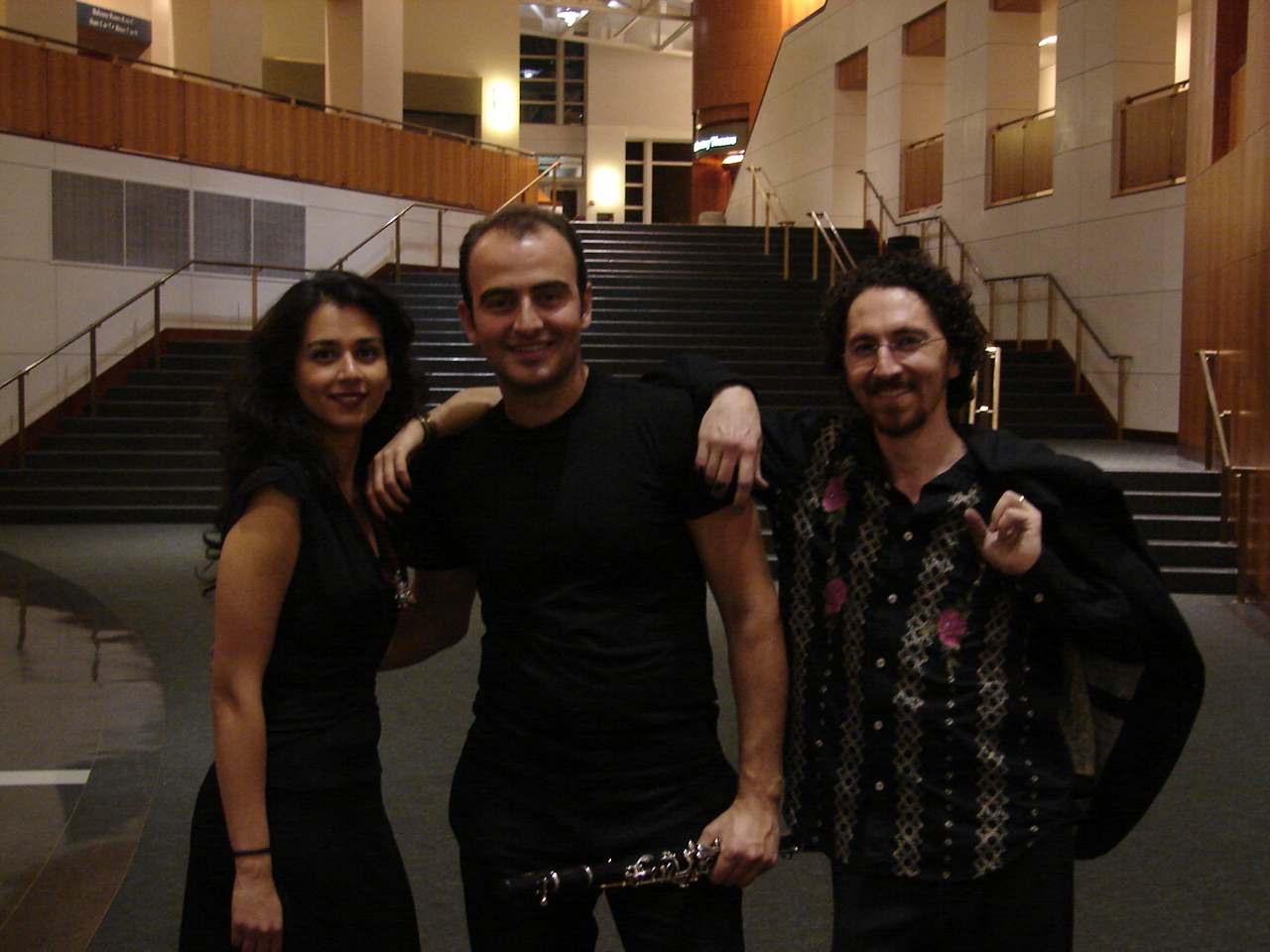 Composer Michael Burritt, Molly and John Bruce Yeh in World Premiere of Duo Concertante for Clarinet, Percussion and Concert Band