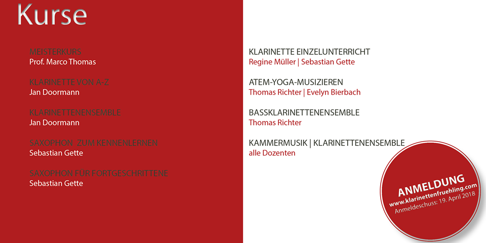 - Compulsory piece: a concerto for clarinet and orchestra – prize-winner of the Composition Prize 2017 (15-20 min.)