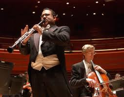 This afternoon, Ricardo Morales gave a solo performance in front of the Philadelphia Orchestra playing the Copland Clarinet Concerto in a program titled "Sounds of the New World." Besides the Copland, the program included Samuel Barber's Toccata Festiva for Organ and Orchestra (Ken Cowan, the organ soloist) and Dvorak's Symphony No. 9 "From the New World" and Marin Alsop was the conductor.