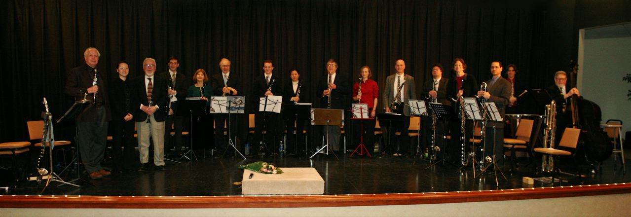 Gennusa Clarinet Camerata, premier concert: William Wright, Eb clarinet and assistant conductor; Michael Kelly, Eb clarinet, basset horn and music coordinator; Nancy Genovese, Eb and Bb clarinets; Stephen Bates, Laura Kelsey, Peter Mika, Joseph Tichacek; Angela Murakami, Evan Ross Solomon, Bb clarinet; Denis Malloy, Nancy Switkes, bass clarinet; Maurice Saylor alto and contra bass clarinets; Ronald Vazques, contra alto clarinet; Edward Skidmore, string bass; Greg Jukes, tympani and percussion; SeungShin Sophia Yoo, conductor; Riderwood Village, Encore Theater, Silver Spring, Maryland February 128, 2007, Symphony #94, Haydn (arr. Freeman); Rag Doll, N. H. Brown (arr. Wakefield); Adagio, from the Cclarinet Quintet Op. 23, H. Baermann (formerly attributed to R. Wagner), Concerto Grosso OP. III, No. 6, Vivaldi (trans. Kermit Peters); Two Fits from "The Hunting of the Snark", Saylor; Irish Tune, Granger (arr, Saylor).