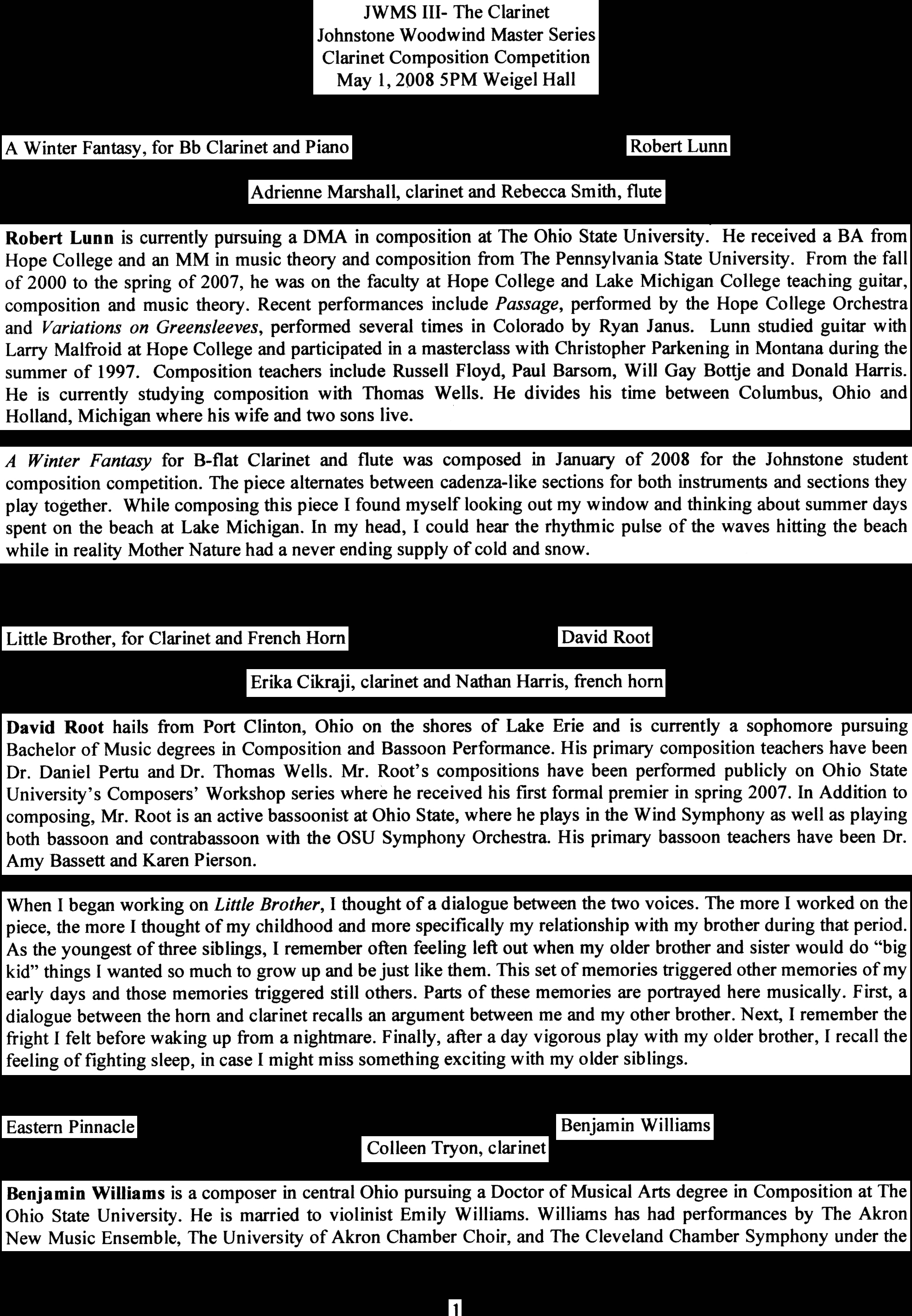 School in New York, student of Charles Neidich.
