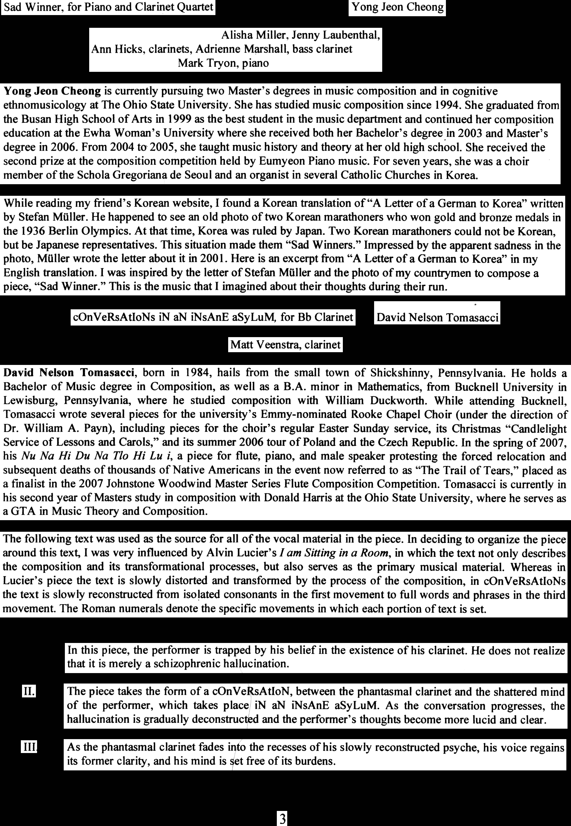 the names of three students: Hideaki Aomori, a classical clarinetist with an