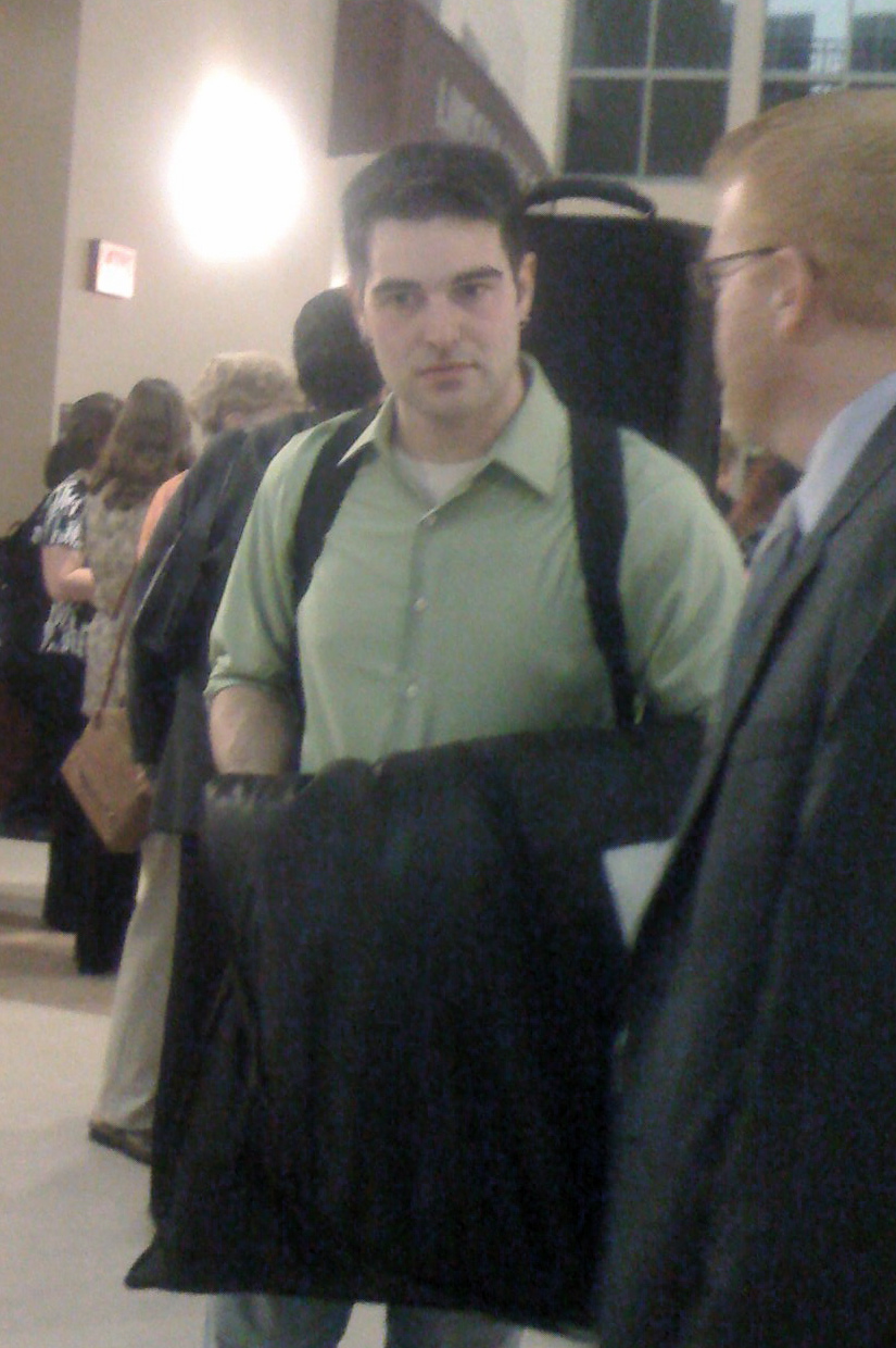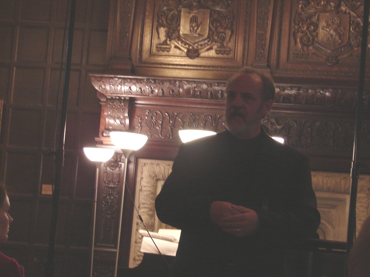 Redwine explaining new work by John Stephens