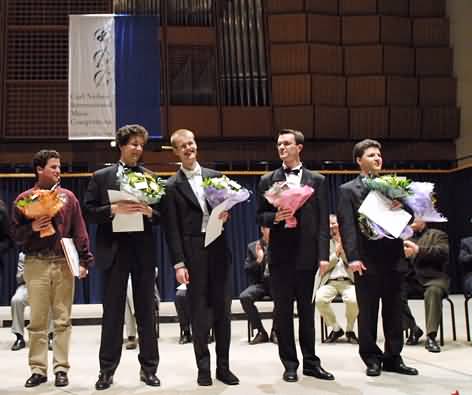 The 12 semifinalists performed solo pieces by Berio, Denisov and Stockhausen as well as Carl Nielsen’s delightful “Serenata in vano” for clarinet, horn, bassoon, cello and double bass. The latter was played with musicians from the Odense Symphony Orchestra.