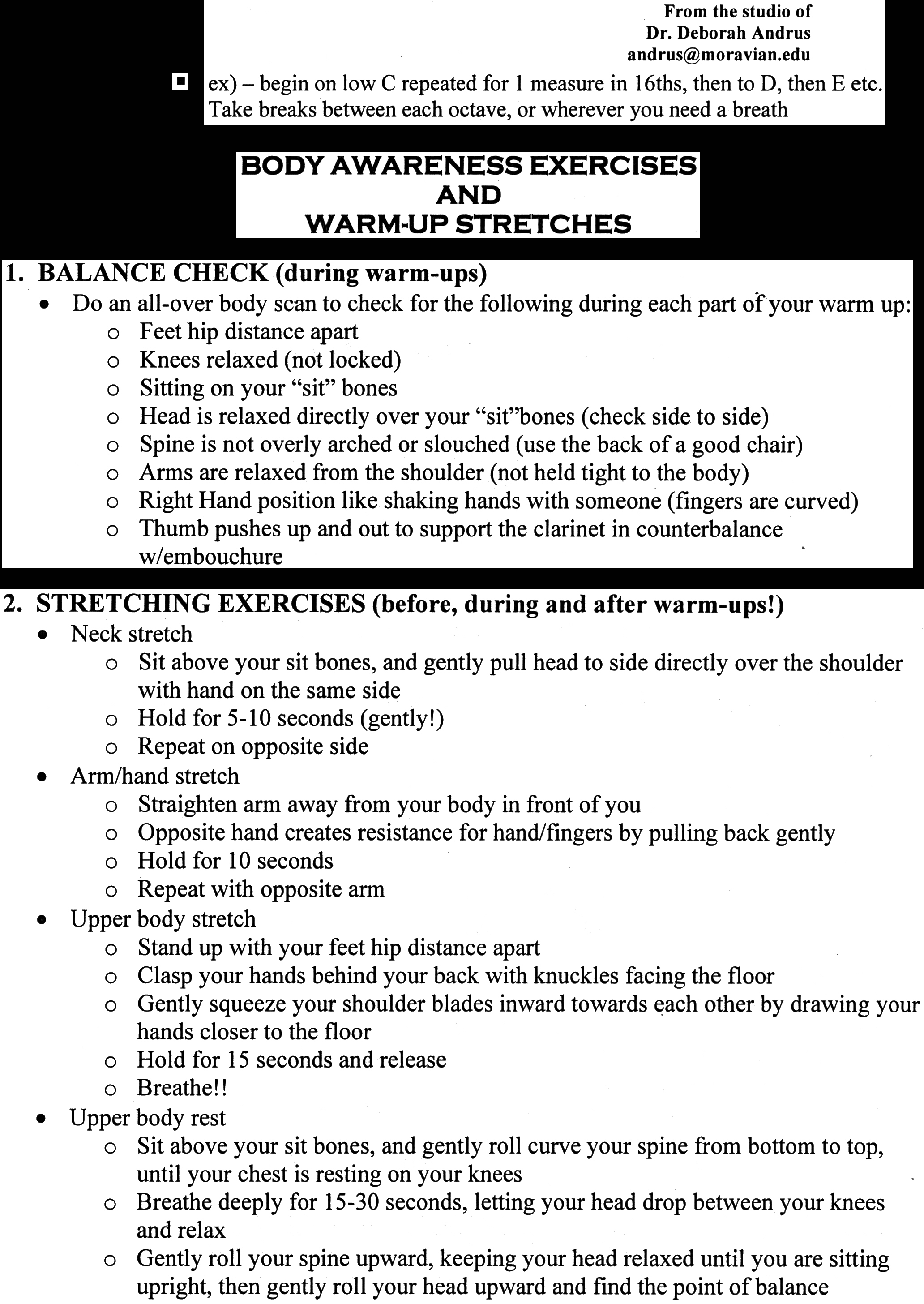 Dr Sanders; a group Clarinet Choir with 2 rehearsals and a concert was