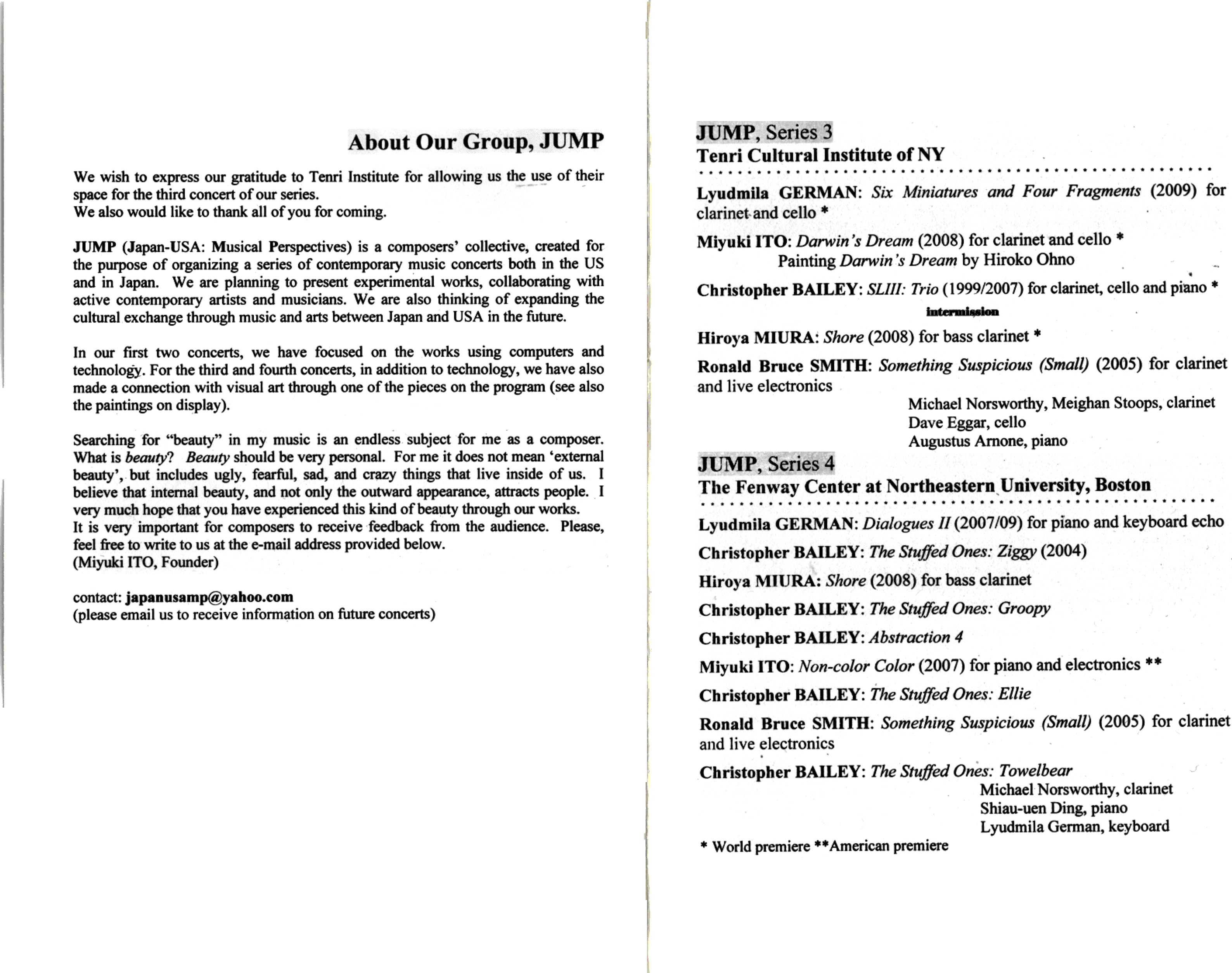 Featured in Japan-USA Musical Perspectives Concerts with Four World Premieres in