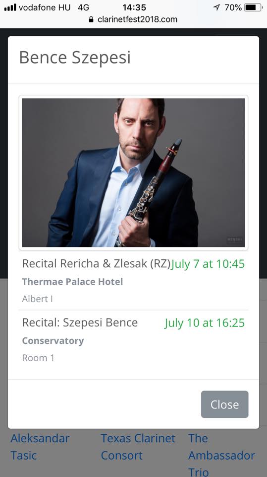 Most probably the best ClarinetFest on record featuring a multitude of world-class clarinetists and soloists, along with extensive support ensembles including the Brussels Royal Philharmonic, the Flemish Chamber Orchestra, numerous Belgian Military Bands, Clarinet Choirs coming from all over the globe, and under incredible Directorship of VIP Eddy Vanoosthuyse and ICA Presidents VIP Caroline Hartig and Mitchell Estrin. The Festival was dedicated to the memory of Harry Sparnaay and Guido Six, of which his dedication is below: