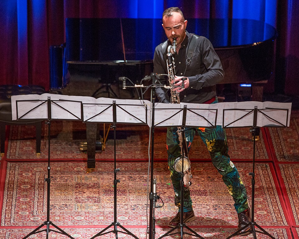 New@Noon shows are usually held—because of that roomful of clarinetists. “We