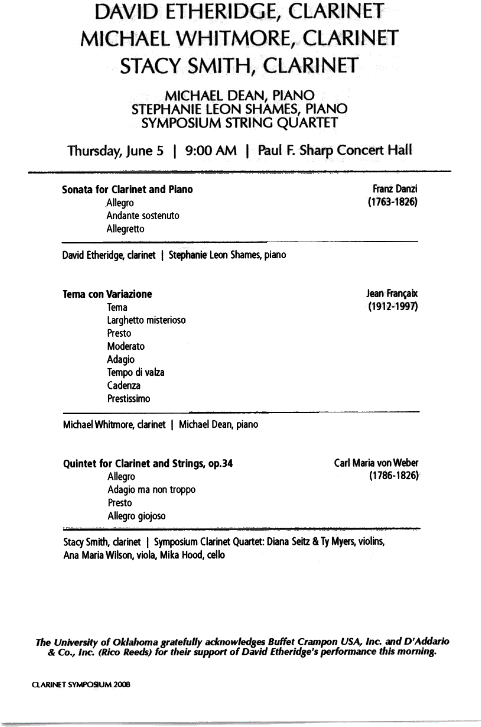 with Stacy Smith the C.M. von Weber Clarinet Quintet Op 34.