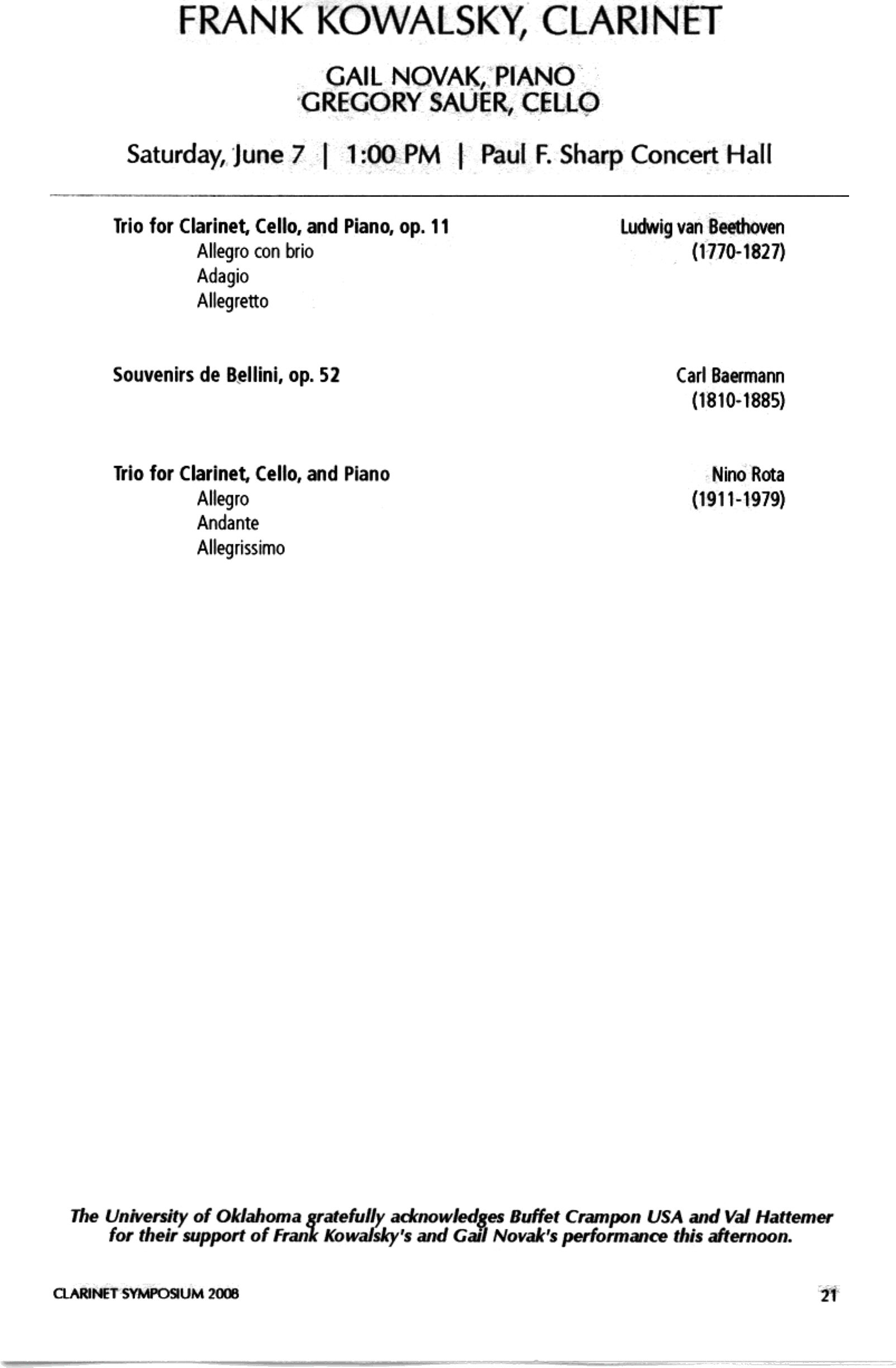 Vanoosthuyse Clarinet Recital