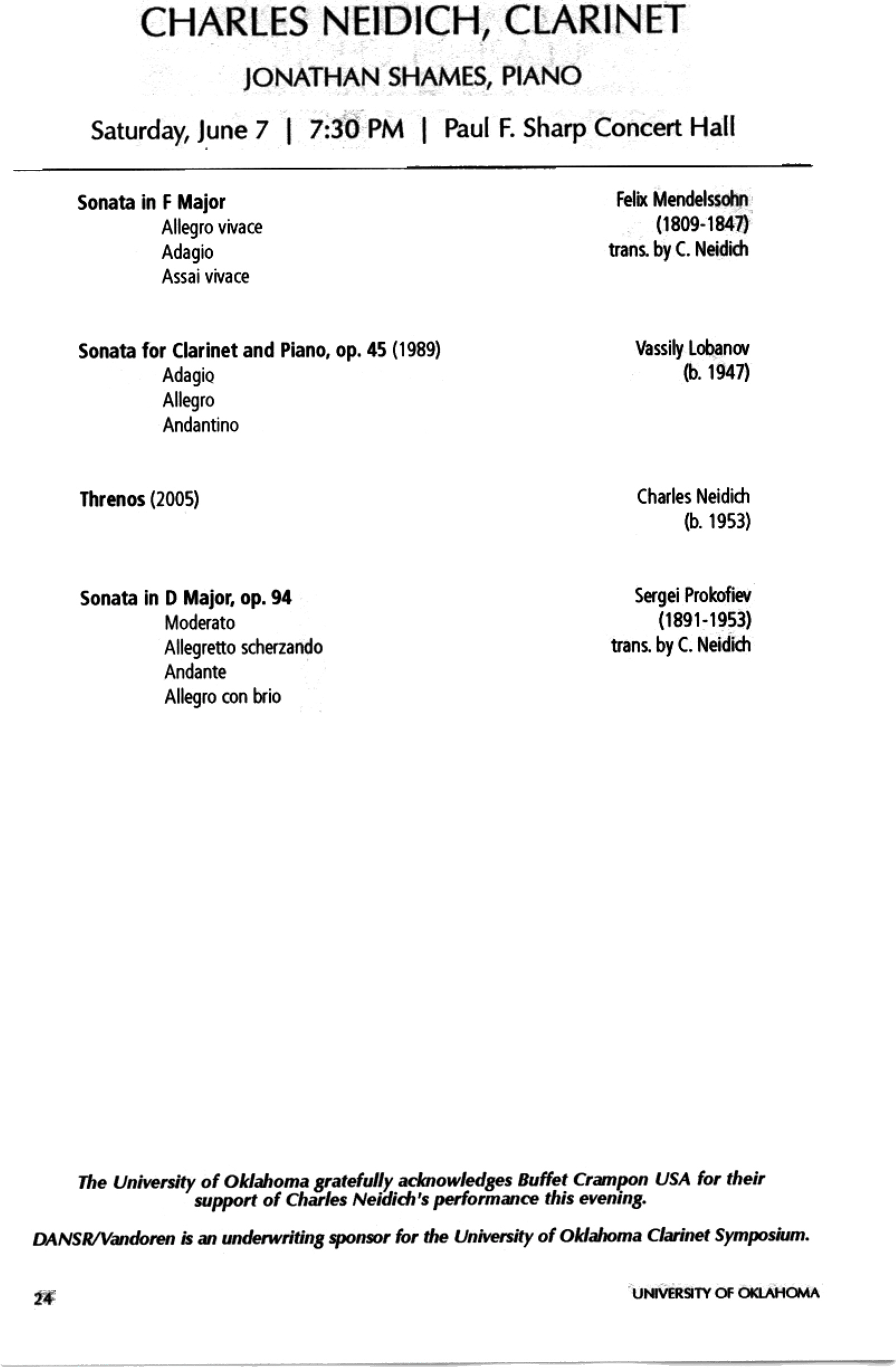 Charles Neidich Clarinet Recital