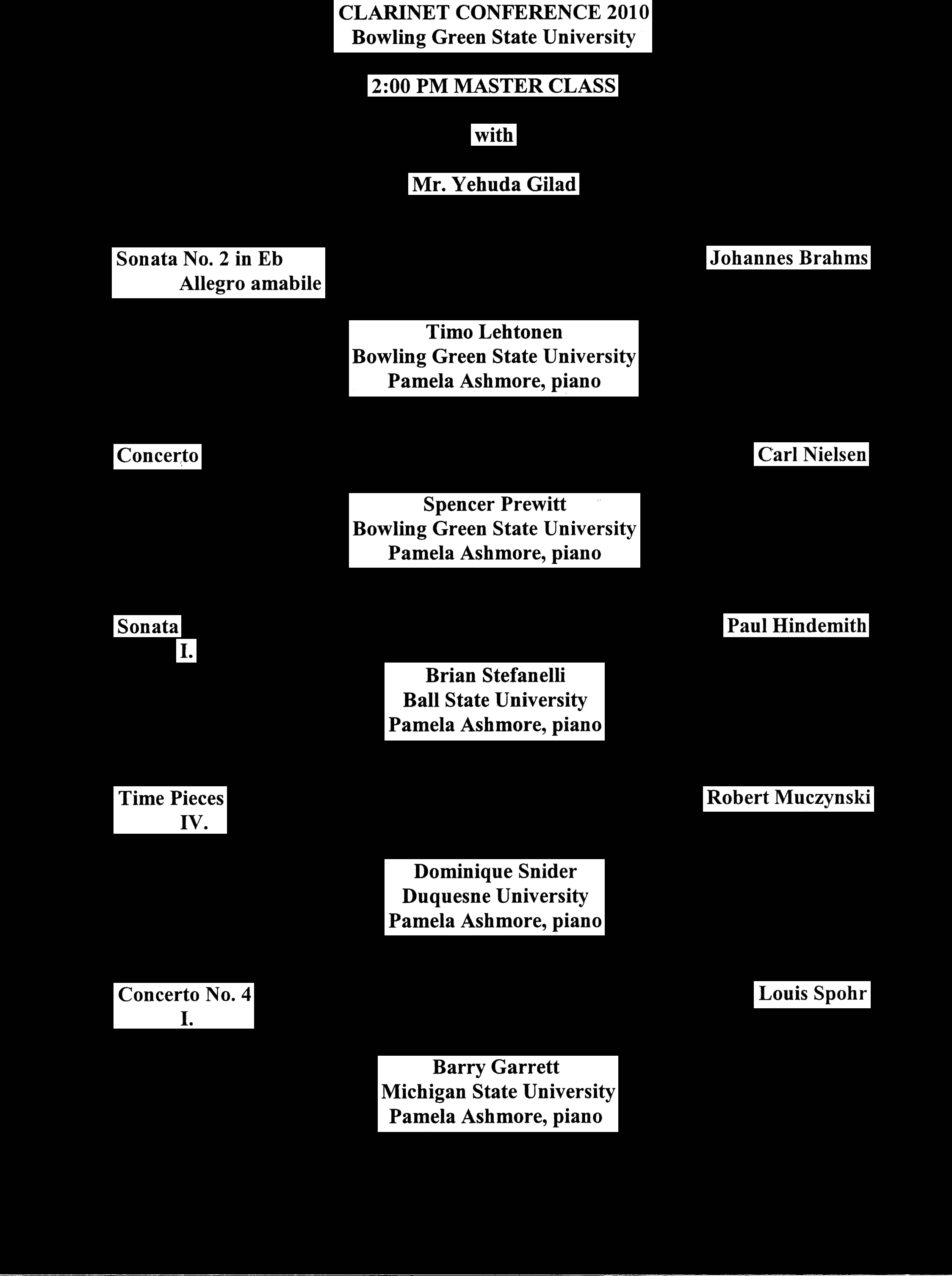 Clarinet Conference 2010 - Bowling Green State University, Ohio, Kevin Schempf, Director, with Guest Faculty and Major Clarinetist and Pedagogue Yehuda Gilad from University of Southern California