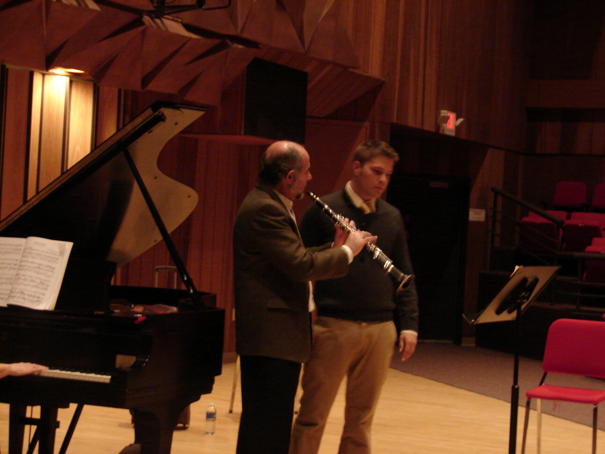 This particular Friday was a very special time for the students and participants to take part in an extensive Master Class with four advanced students working with Mr Drucker covering major recital literature and Orchestral excerpts. The day started with a brief recital informal where performed was the Poulenc Sonata and the Berio Sequenza IX. Although this took an afternoon, the time was well spent with students very enthusiastic about what has happened, realizing that a legend has blessed their clarinet lives. This entire weekend was kind of a triple header for Mr Drucker, who played a Chamber Concert the next day in Huntington, Long Island with the American Chamber Ensemble, and Sunday played a similar program with seminar at New Jersey City University. This program here was thanks to the University under Host Dr Charles West, and Buffet-Crampon, who sponsored this event.