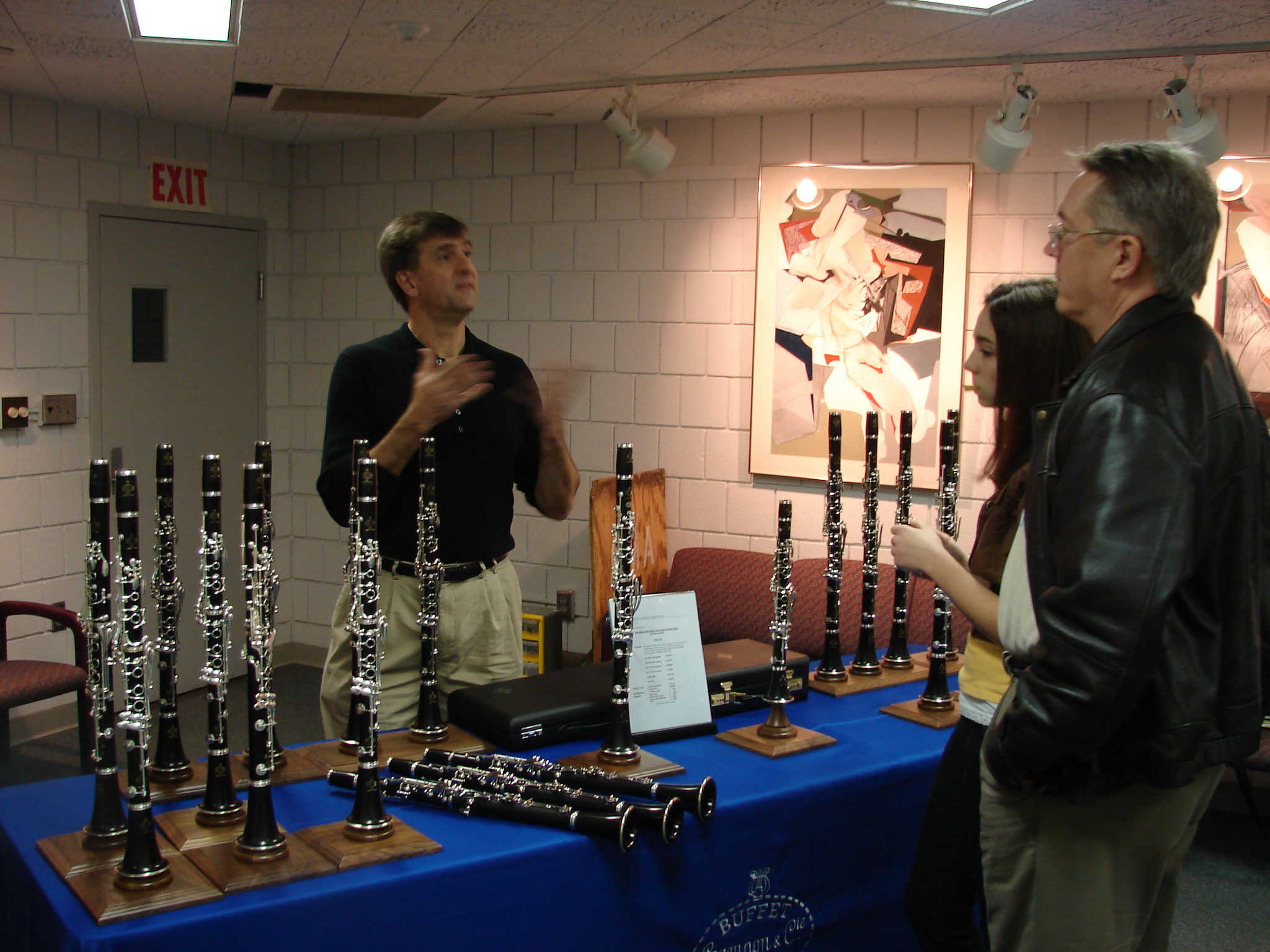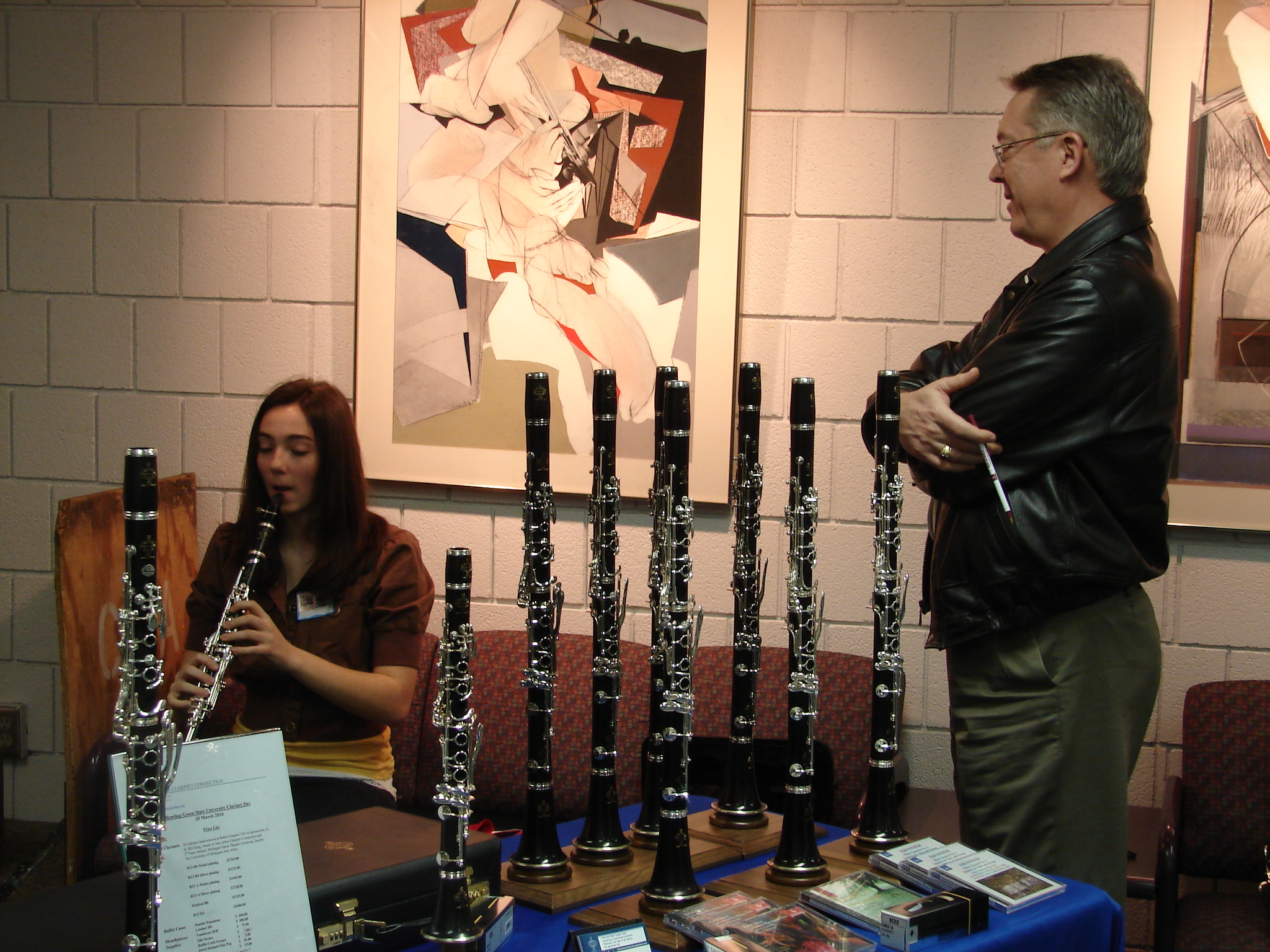 In addition to the classes, Instrument and accessory displays were available to everyone especially Buffet-Crampon with their full array of models they offer including student and professional clarinets. Eric Satterlie was available for Clarinet repairs and tweaking. All the needed accessories including reeds, mouthpieces, tuners, etc were available as well. The day was very busy between the displays, master classes, and a Clarinet Choir reading session, and a faculty recital to finish the Conference given by Guest Artists, Elizabeth Crawford, Professor at Ball State University in Indiana, Justin O'Dell and Caroline Hartig, Professors at Michigan State University, Campbell MacDonald, William King from Ann Arbor Michigan, and Director Kevin Schempf, who is to be credited with this great Conference. The 1st Conference was held in March 2008.