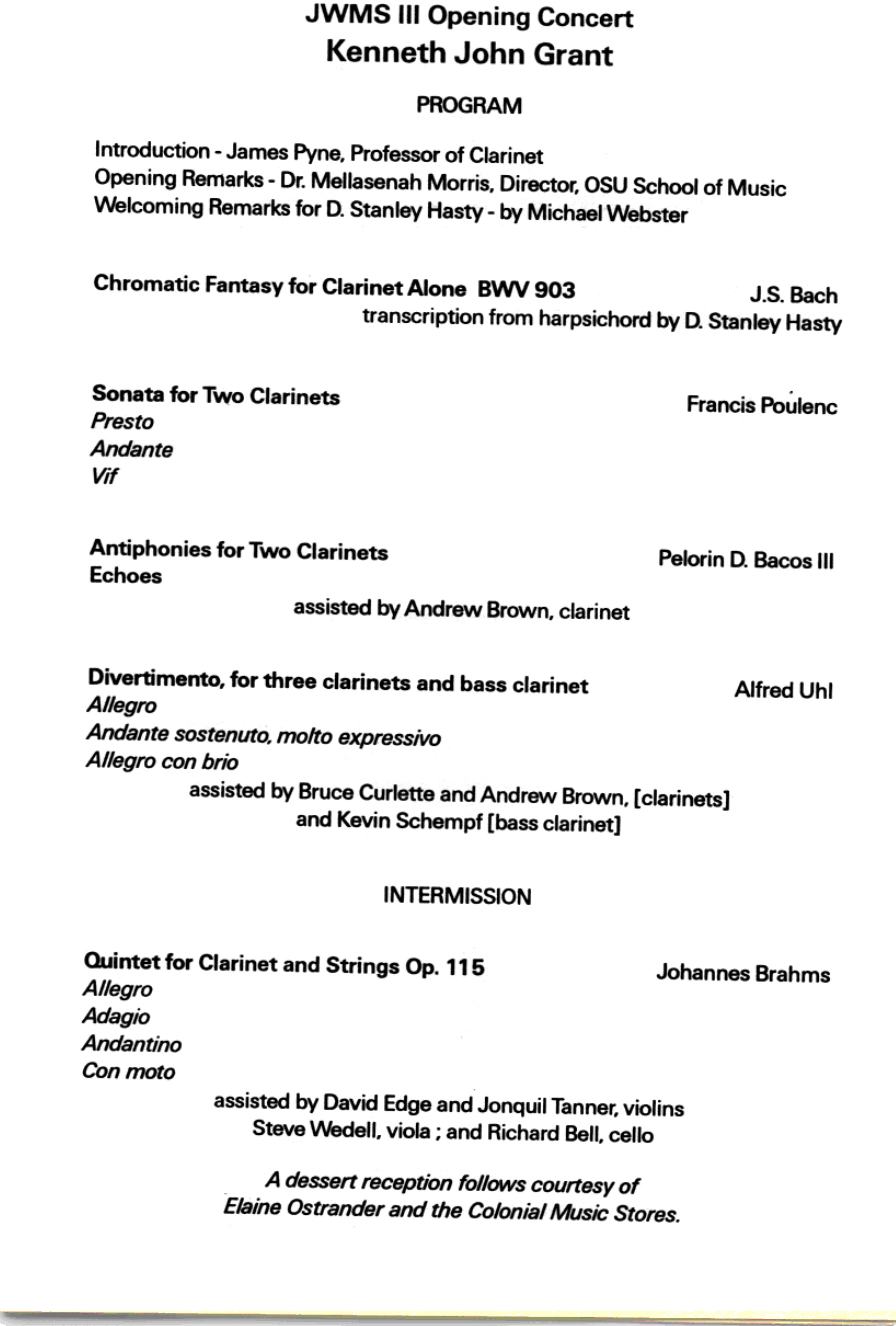 Series Clarinet Festival - Honoring D Stanley Hasty - Ohio State