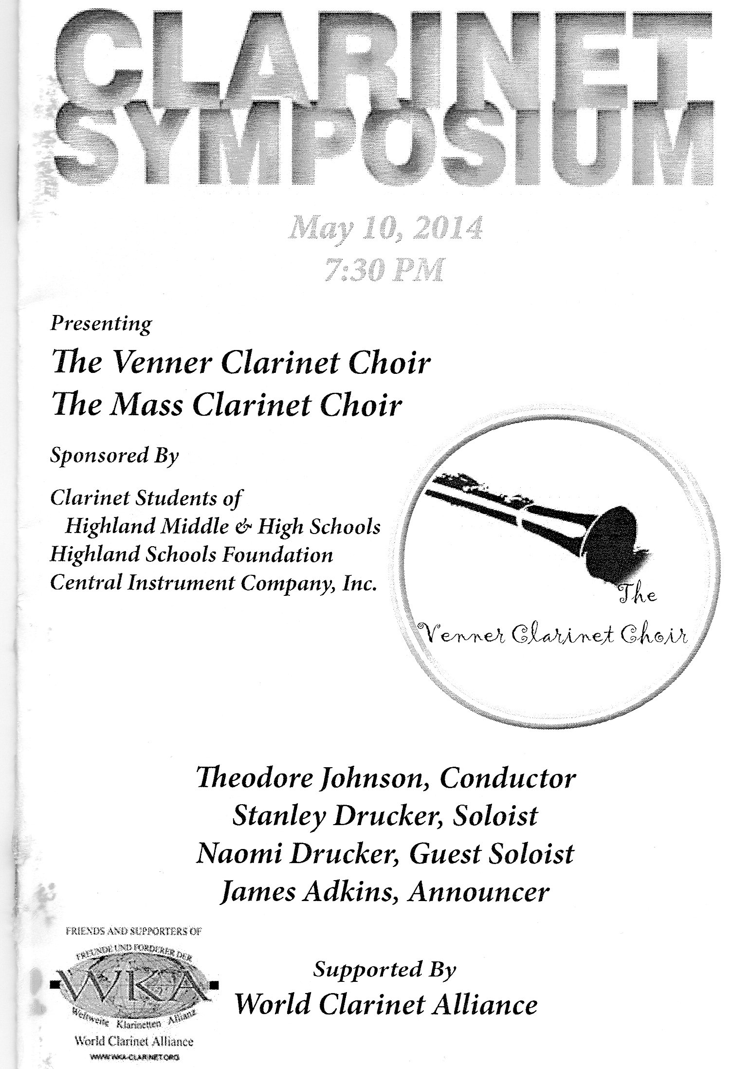 Ohio Clarinet Symposium, James Stahl, Director, from CENTRAL INSTRUMENT COMPANY with Celebrity VIP Artists Theodore Johnson, (2nd Clarinetist Emeritus of The Cleveland Orchestra under George Szell), Senior VIP Stanley Drucker (Legend Solo Clarinetist in the New York Philharmonic, and Tom Reed, Professor at Ashland State University - Highland High School in Cuyahoga Falls, Ohio - 10 May 2014