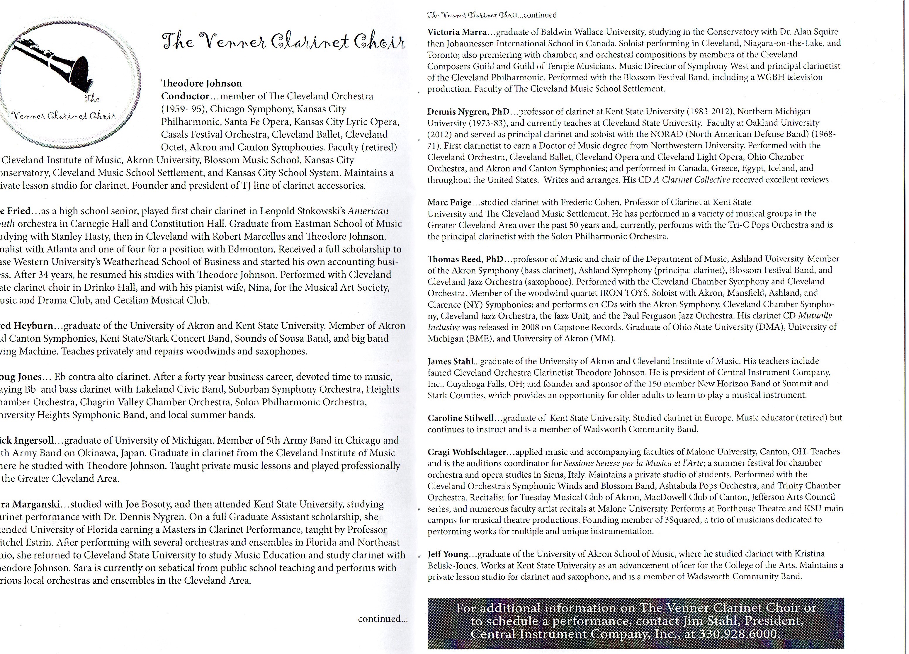 The Venner Clarinet Choir, a professional clarinet choir sponsored by the Central