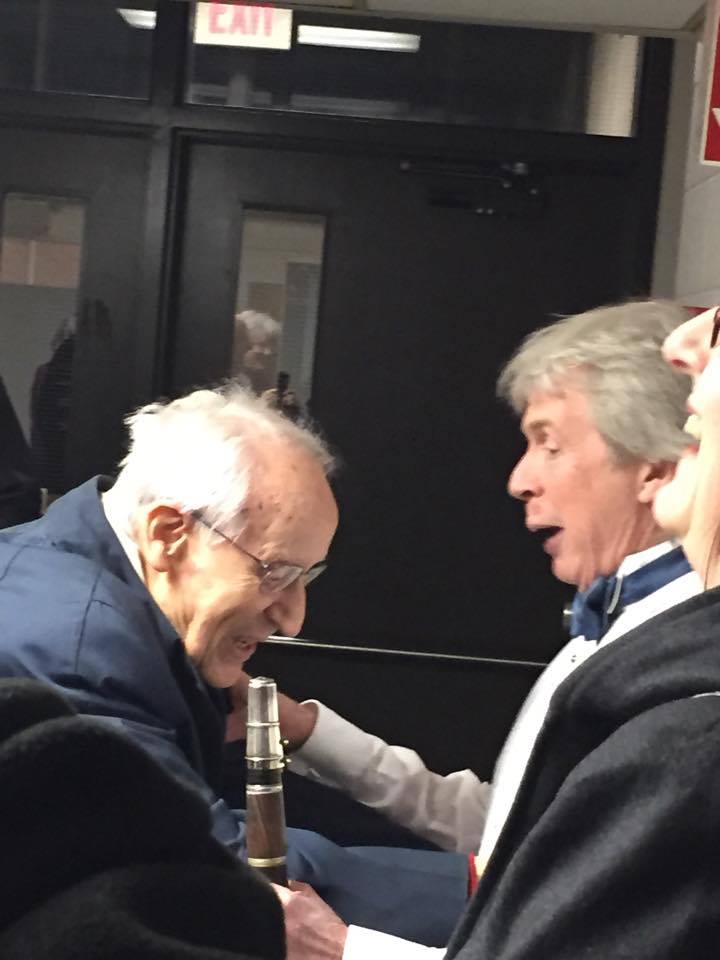A marvelous performance with a diverse program presented in two concerts with the Park Ave Chamber Symphony featuring legend Stanley Drucker under David Bernard, a former Clarinetist, brought standing ovations with a near sold out pair of concerts. Programs included the Nielsen Helios Overture, the Mozart Concerto and the Dvorak New World Symphony #9. Dr Drucker was presented with a special plaque in honor of his long distinguished career and noted that he was in essence the New York Philharmonic persona because of his long standing accomplishments there with 61 years in the Orchestra as principal and soloist over 200 times. Checking Dr Drucker's VIP Pages will indicate his mark in the Clarinet world, unmatched by anyone before or since. The Interview below sums up with Conductor David Bernard and him the career high points and message that Drucker gives to all players.