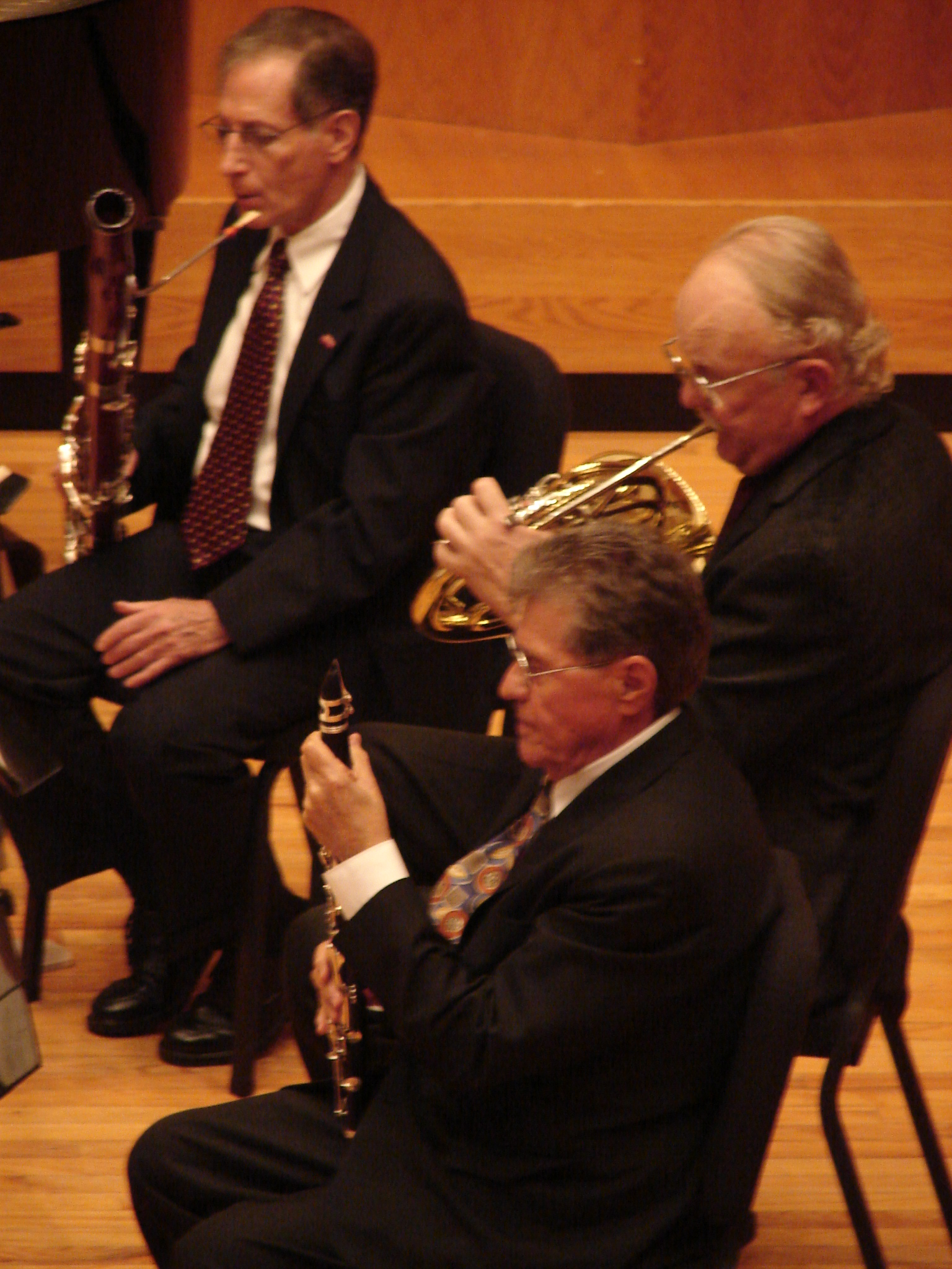 In its 19th season, this special Carter Chamber Music series features key principal and artist musicians, past and present from the New York Philharmonic performing composite quality ensemble music with Director and Piano Professor Emeritus Robert Miller, a superb pianist and chamber artist in his own right. The programs and photo galleries above attest to the brilliance of the performances and not much can be said as intangibles are difficult to explain. Over 50 years of collective artistic experience showcase the individual players especially legend Clarinetist Stanley Drucker who at age 82 is still as unique as a younger player in his prime. He the following week 1 - 2 October is soloist performing the Copland Concerto (the same work he retired with as soloist 2 years ago with the Philharmonic) and still active and astounding everyone who hears him. Music performed here included Wind Quintet works by Milhaud, Ferrenc, and Poulenc, programs above to view. This is an annual event and next year will be the 20th year of this great series, and hopefully will indefinetly continue.