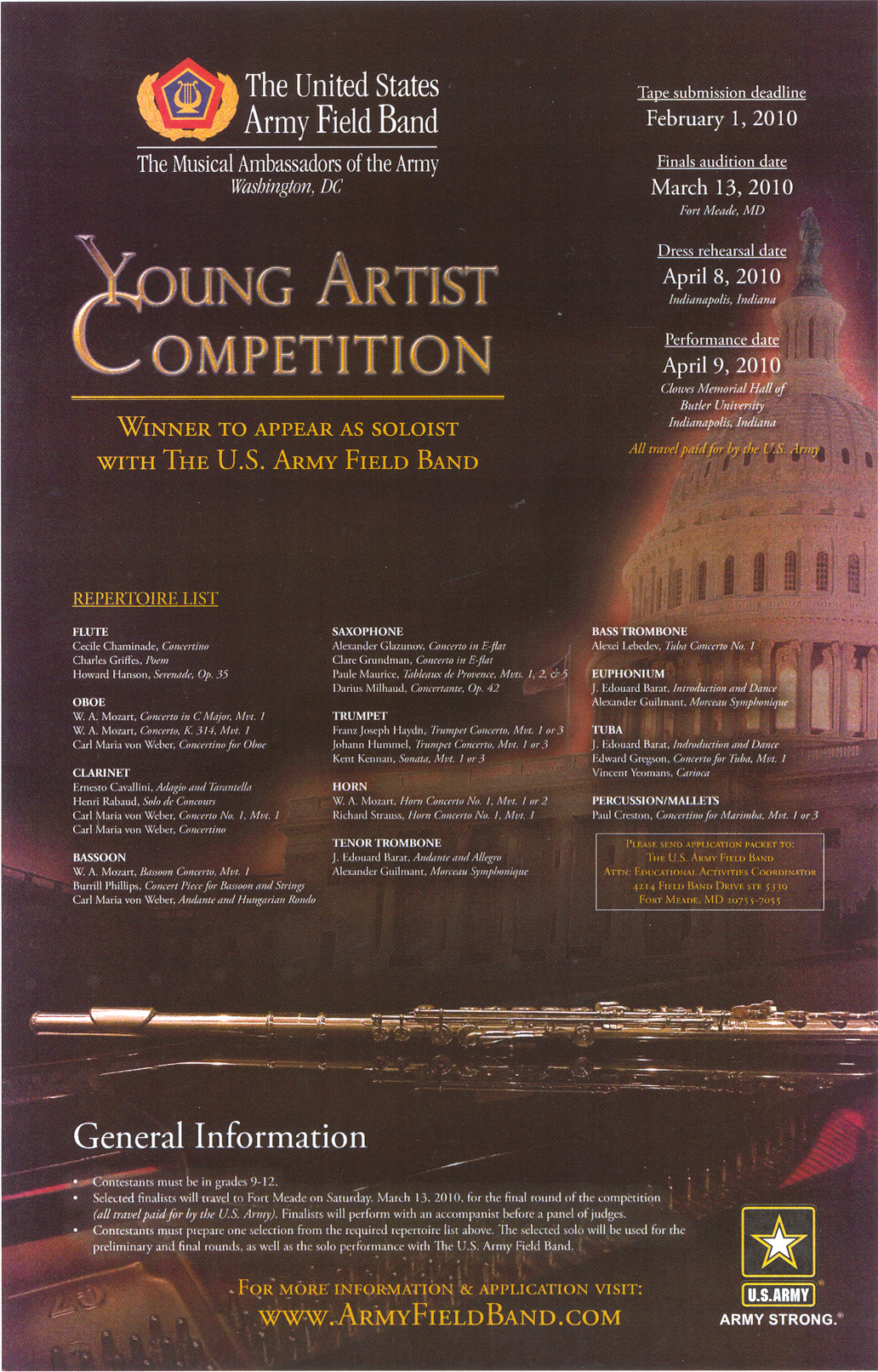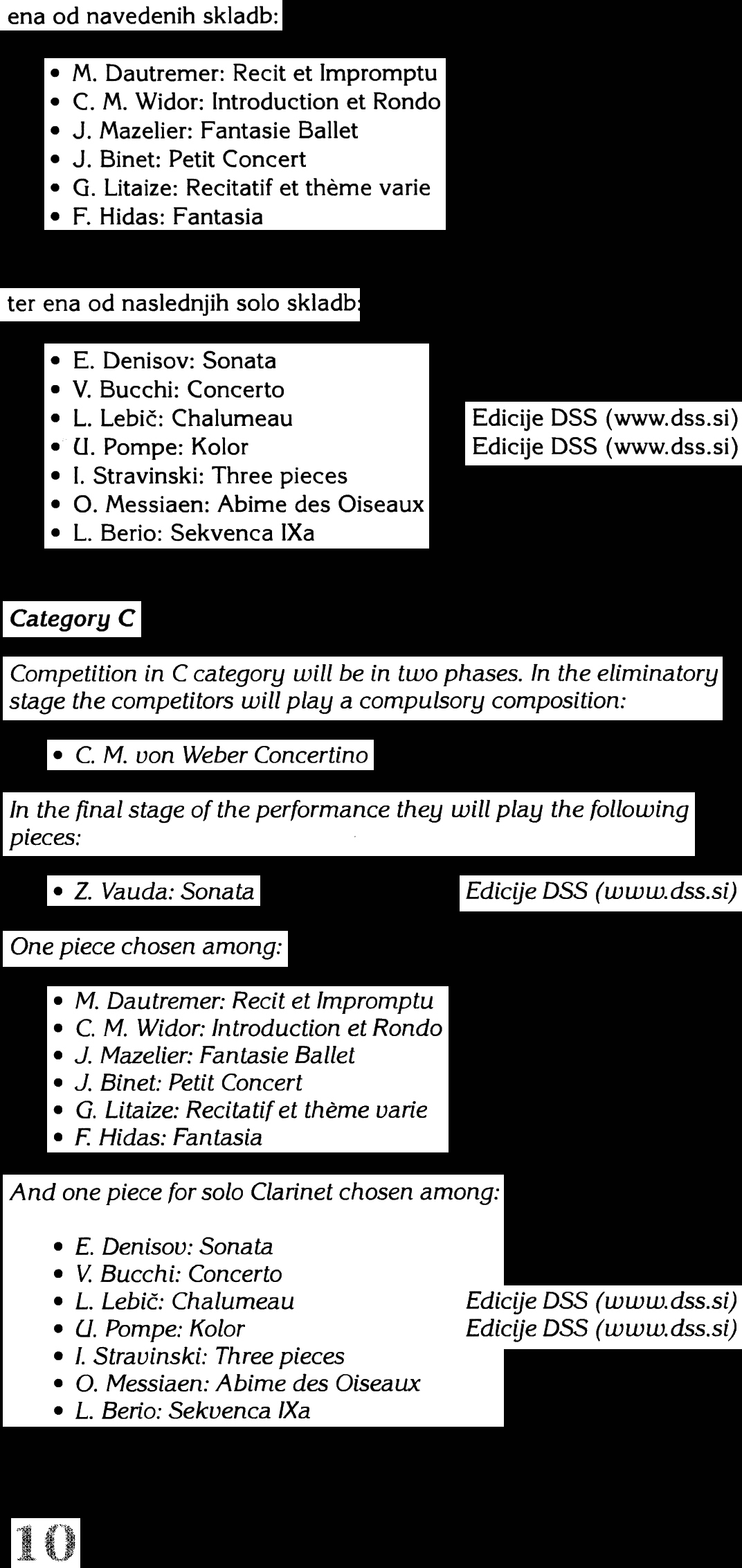 listed repertoire for clarinet, voice, and piano, students will also