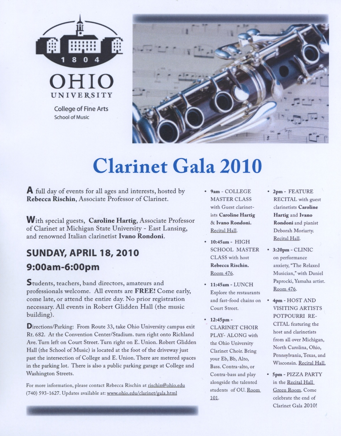 and chamber music for clarinet, voice, and piano. Students will also