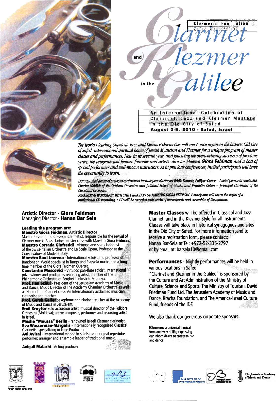 entails three weeks of intensive master classes for clarinetists,