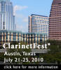 clarinet and piano, clarinet and voice and orchestral works as well as