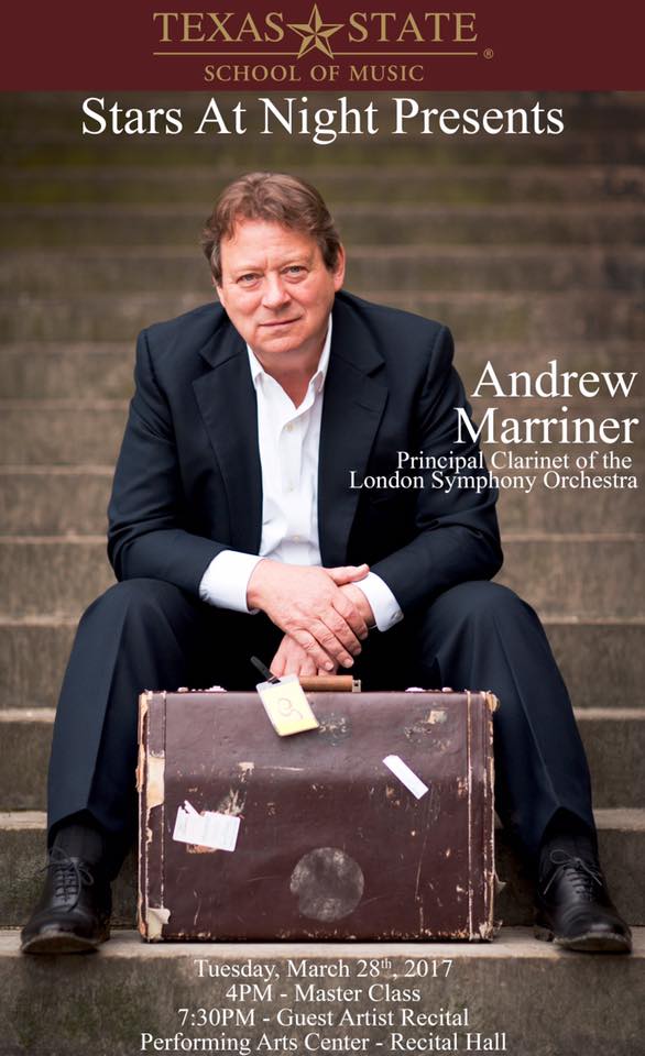 Andrew Marriner Concert and Master Class at Texas State University - 28 March 2017